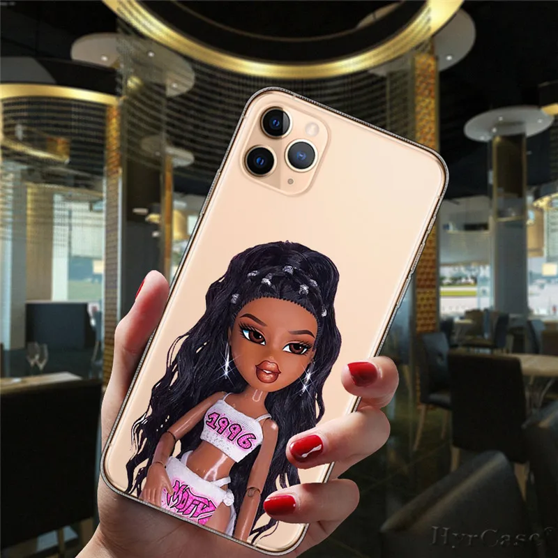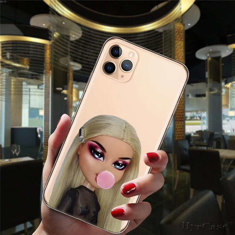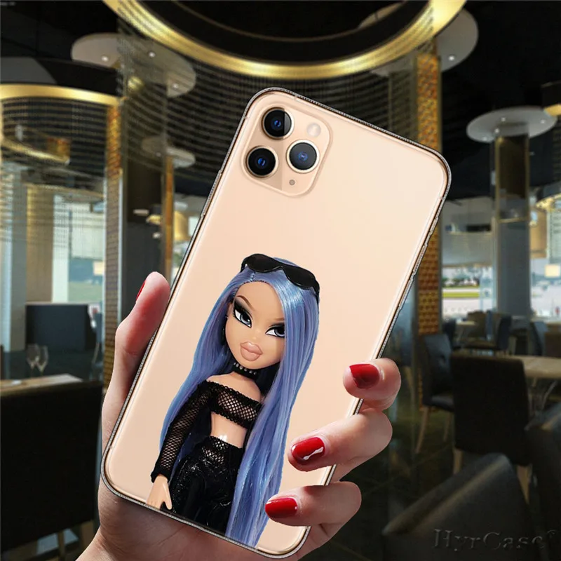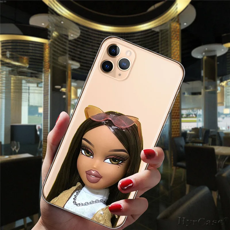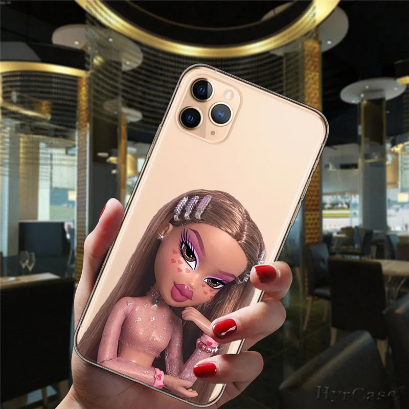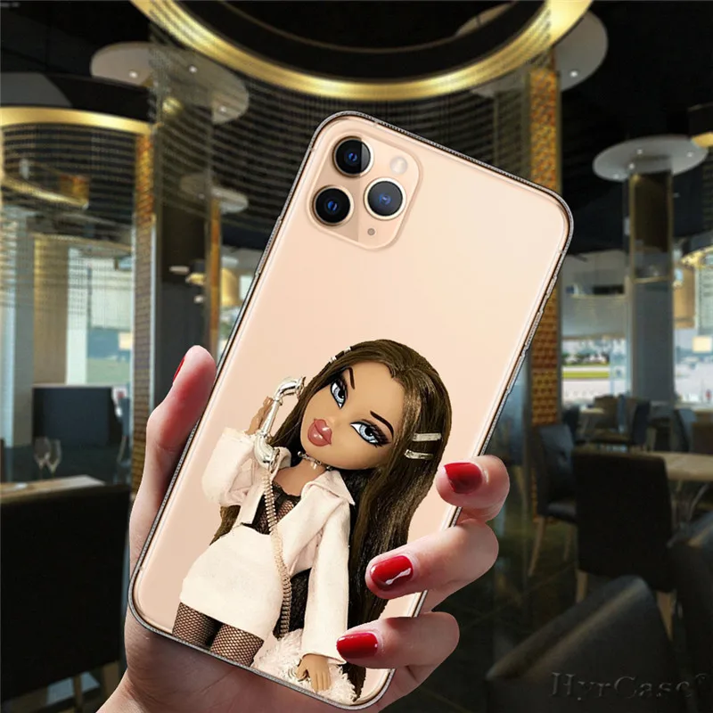 Para iPhone 13 12 11 14 Pro Max Mini 15 Plus 15ProMax funda Popular Linda muñeca Sexy Bratz moda transparente funda de silicona suave