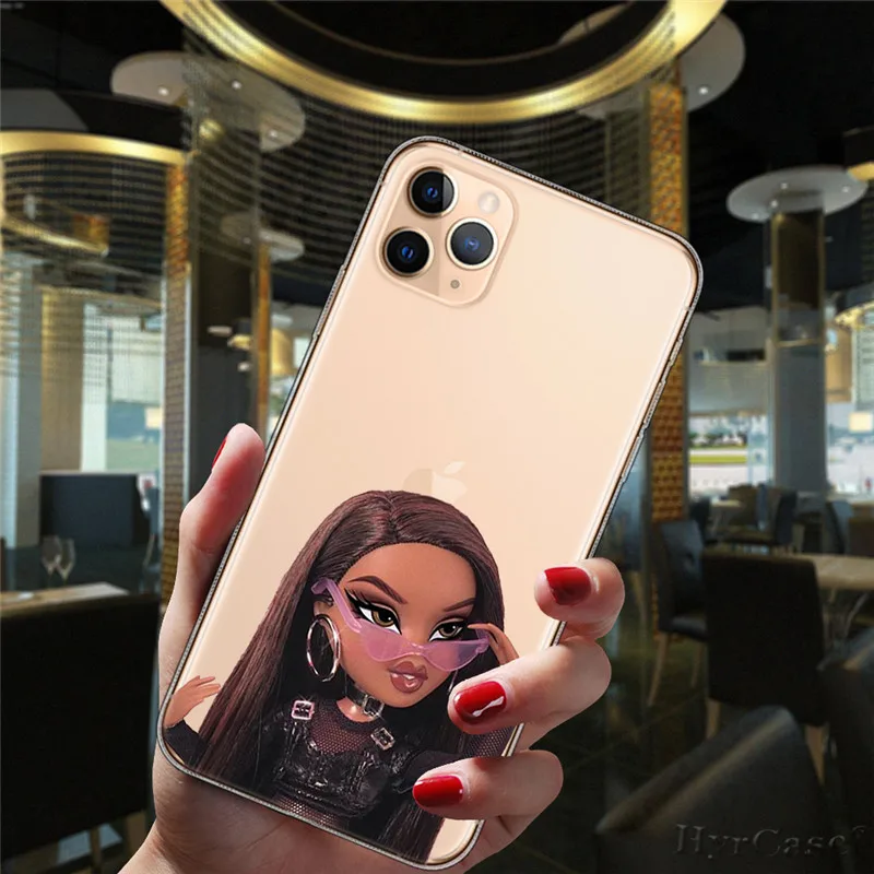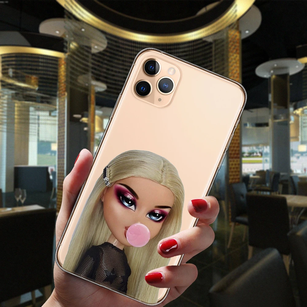Comprar Funda de silicona suave transparente para iPhone 13, 12, 11, 14 Pro Max Mini, 15 Plus, 15Pro Max, muñeca Sexy Popular, Bratz, moda