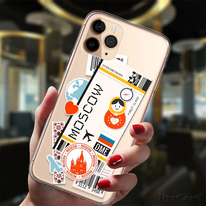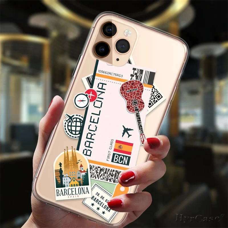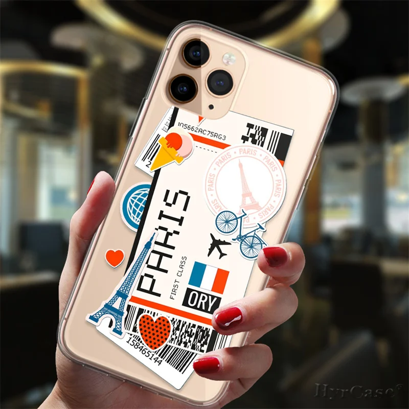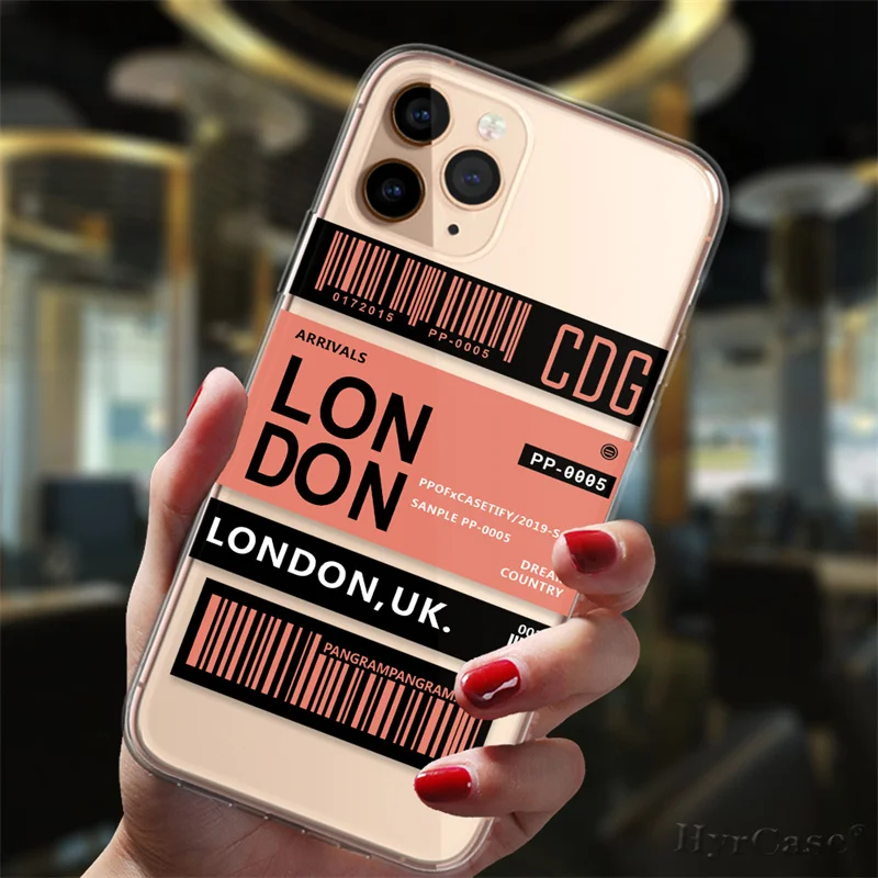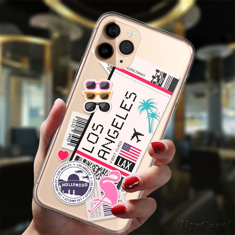 Comprar Funda de silicona suave transparente para iPhone 13, 12, 11, 14 Pro Max, Mini, 15 Plus, billete de avión de viaje Popular, Nueva York, Los Ángeles