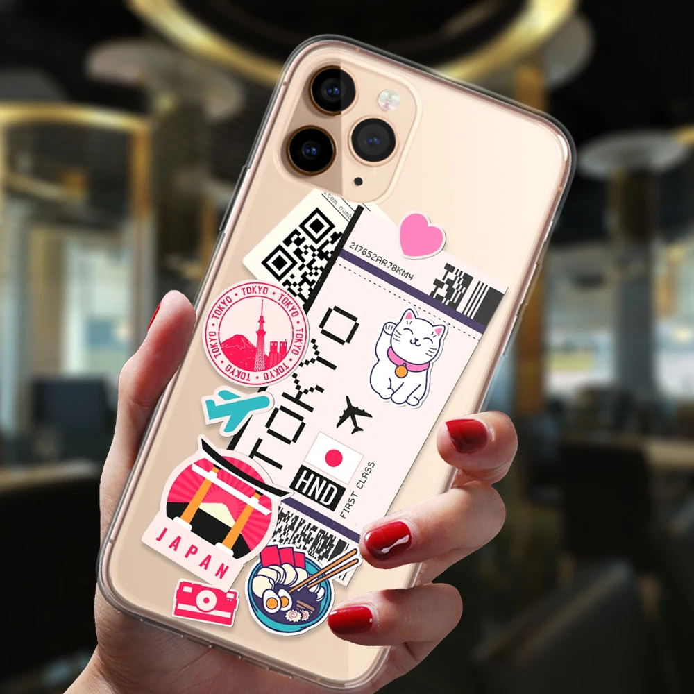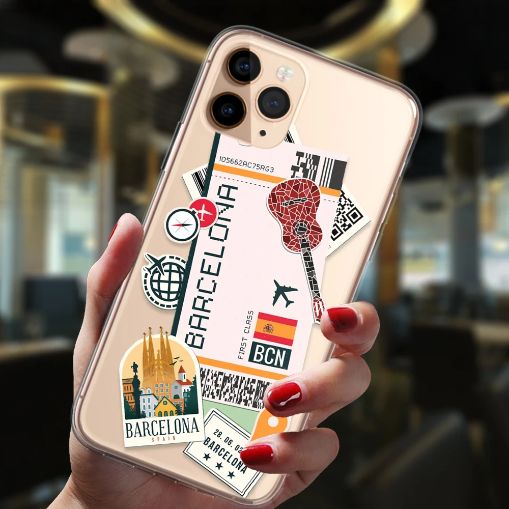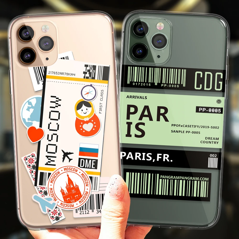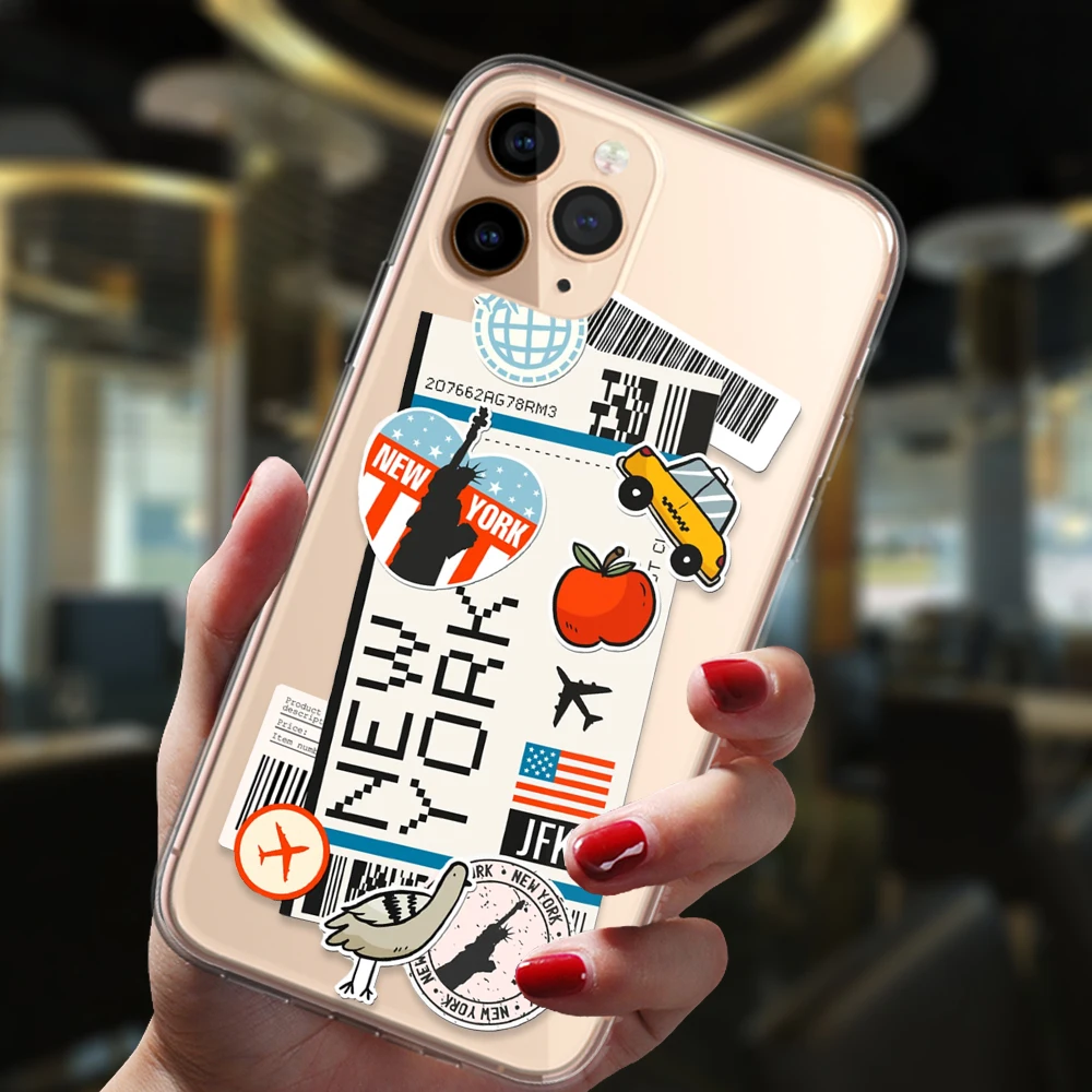 Comprar Funda de silicona suave transparente para iPhone 13, 12, 11, 14 Pro Max, Mini, 15 Plus, billete de avión de viaje Popular, Nueva York, Los Ángeles