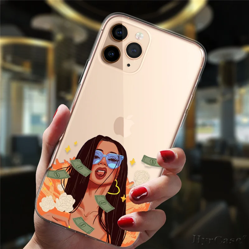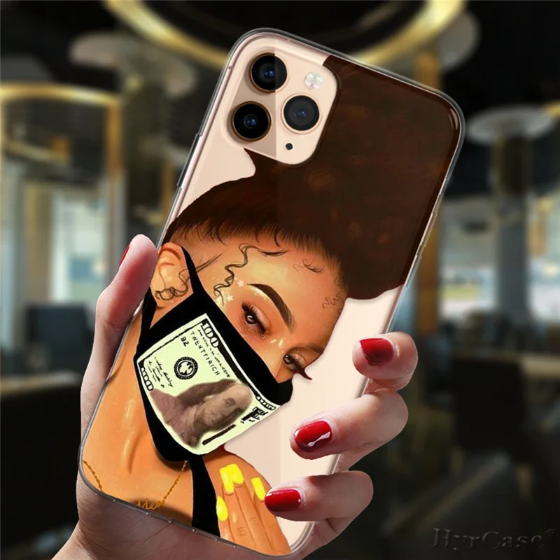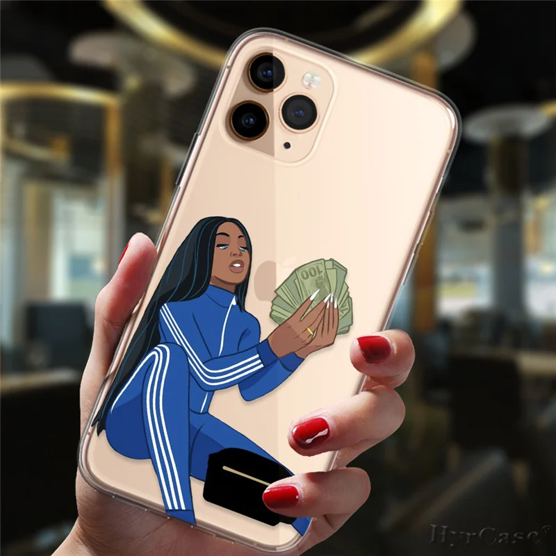 Para iPhone 13 12 11 14 Pro Max Mini 15 Plus 15ProMax Funda HACER DINERO No amigos Kash Afro Funda de silicona suave transparente
