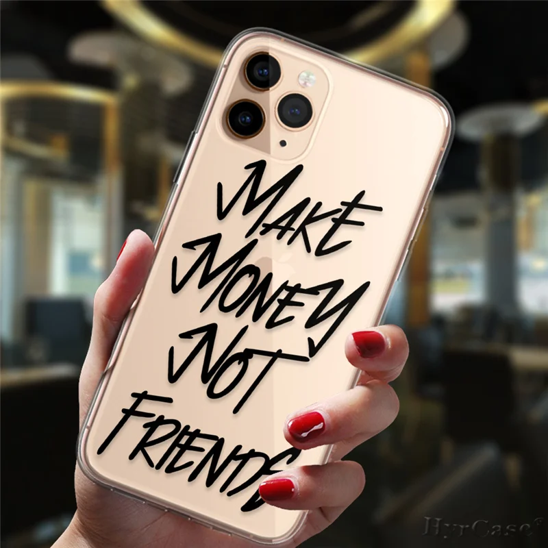 Comprar Funda de silicona suave transparente para iPhone 13, 12, 11, 14 Pro Max, Mini, 15 Plus, 15Pro Max, MAKE MONEY, no Friends, Kash, Afro