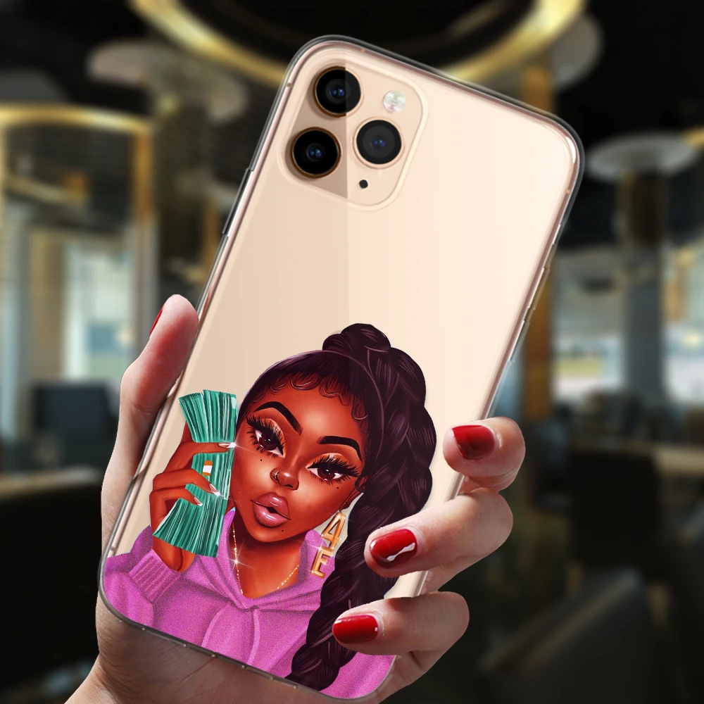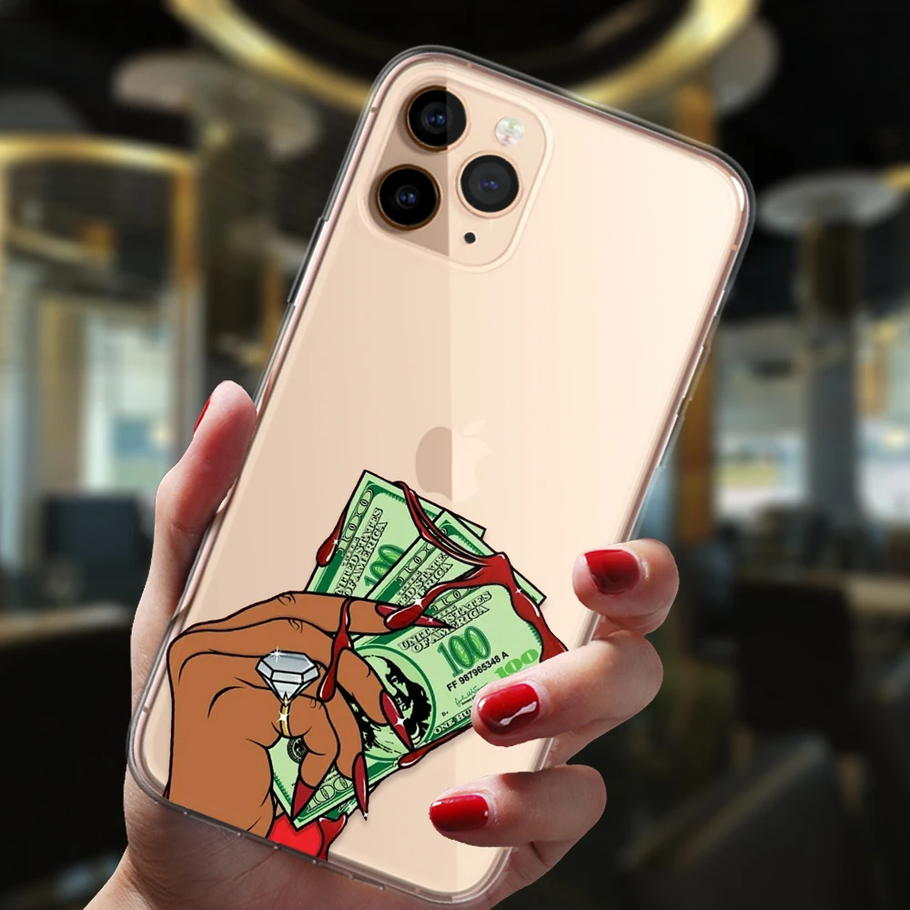 Para iPhone 13 12 11 14 Pro Max Mini 15 Plus 15ProMax Funda HACER DINERO No amigos Kash Afro Funda de silicona suave transparente