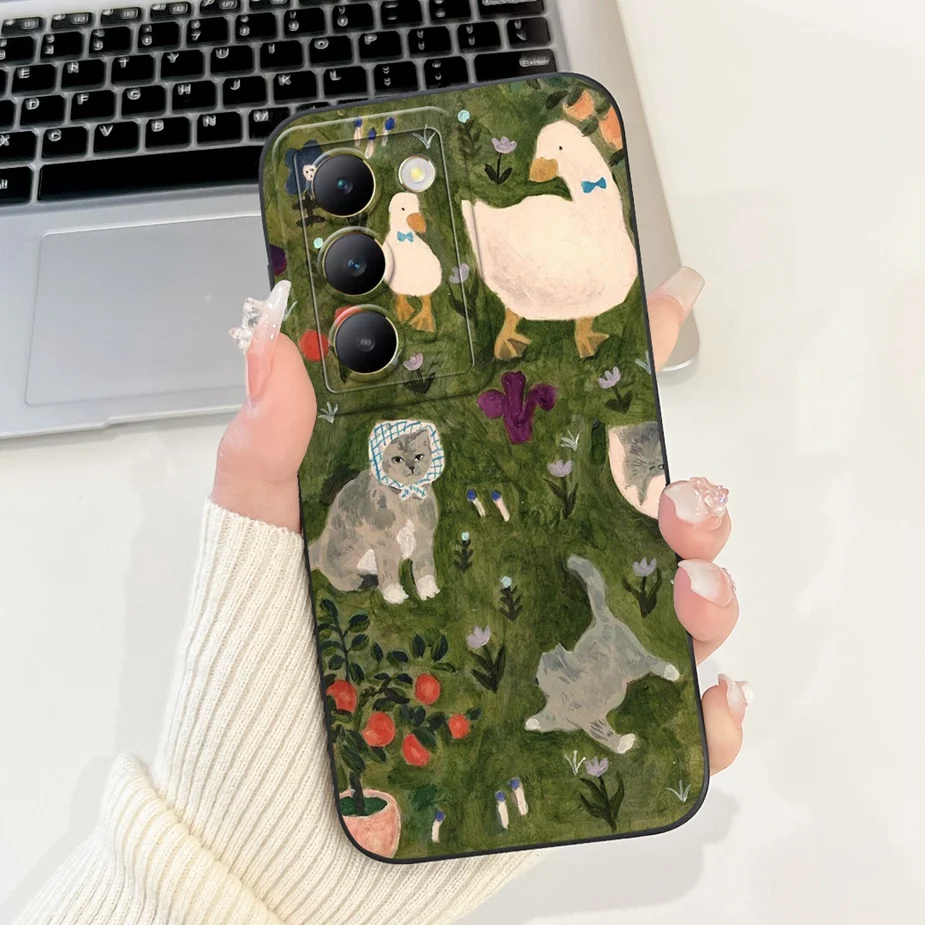 Para Vivo Y100 5G funda V2327 funda de dibujos animados de animales bonitos funda de teléfono de silicona suave para Vivo Y200e 5G V2336 VivoY100 bolsas de contraportada