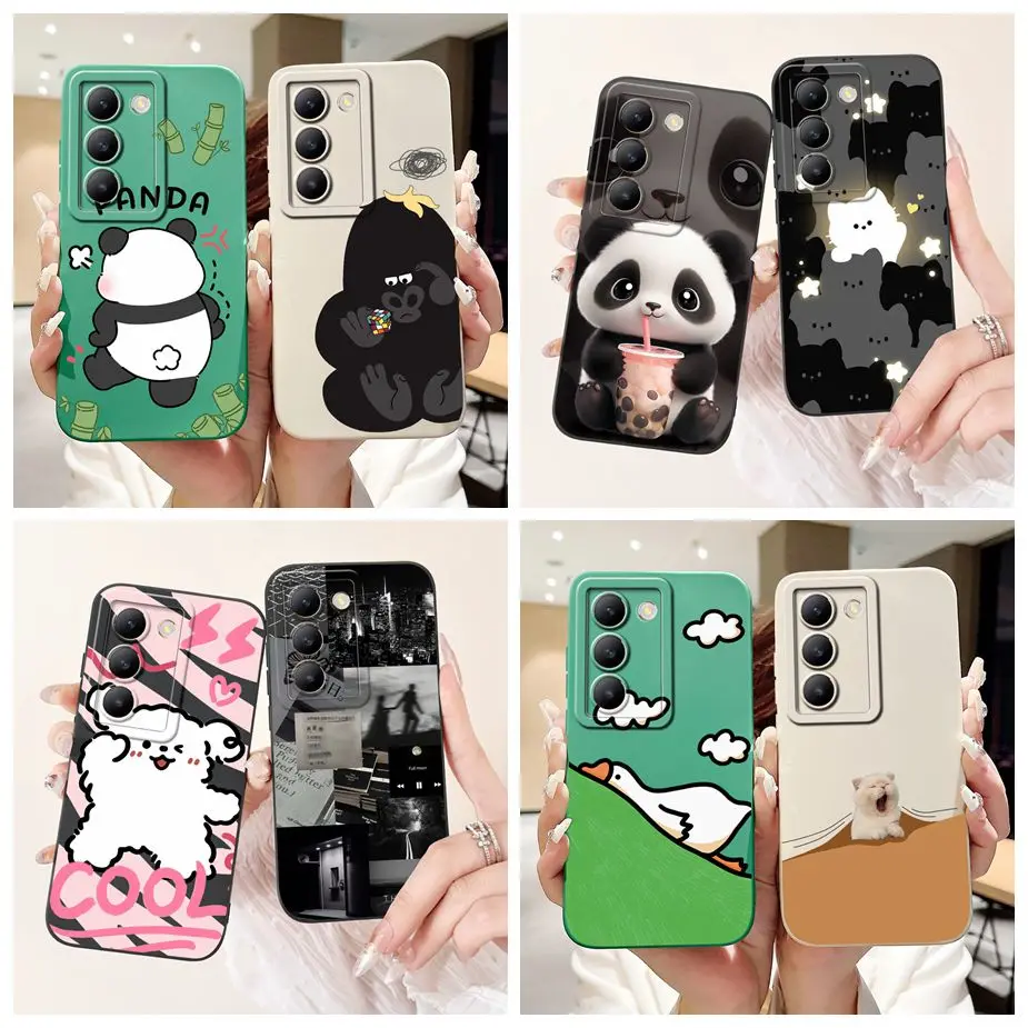 Para Vivo Y100 5G funda V2327 funda de dibujos animados de animales bonitos funda de teléfono de silicona suave para Vivo Y200e 5G V2336 VivoY100 bolsas de contraportada