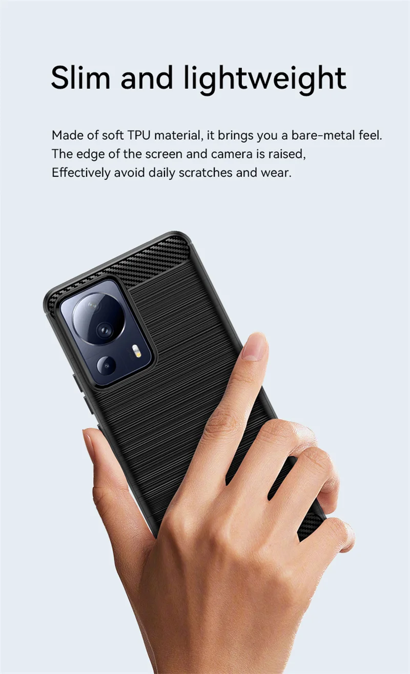Comprar Funda de silicona suave para Xiaomi, carcasa de fibra de carbono, TPU, parachoques de teléfono para Xiaomi Mi 13 Lite