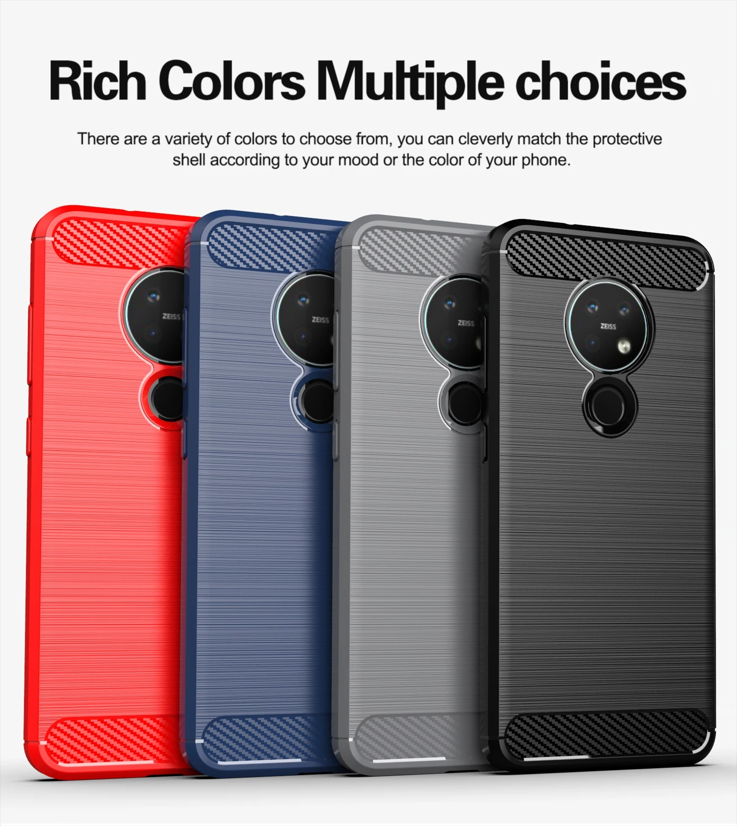 Para Nokia 7,2 funda de silicona suave armadura de fibra de carbono a prueba de golpes funda trasera protectora para nokia7.2 nokia 6,2 shel