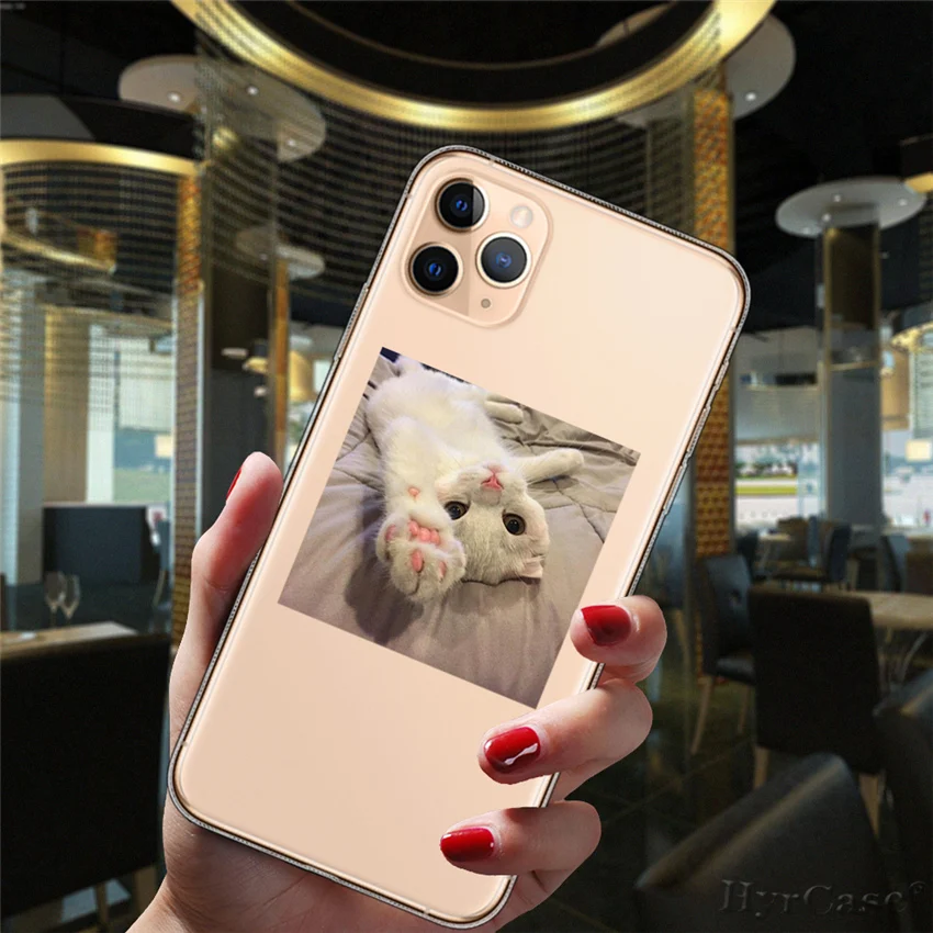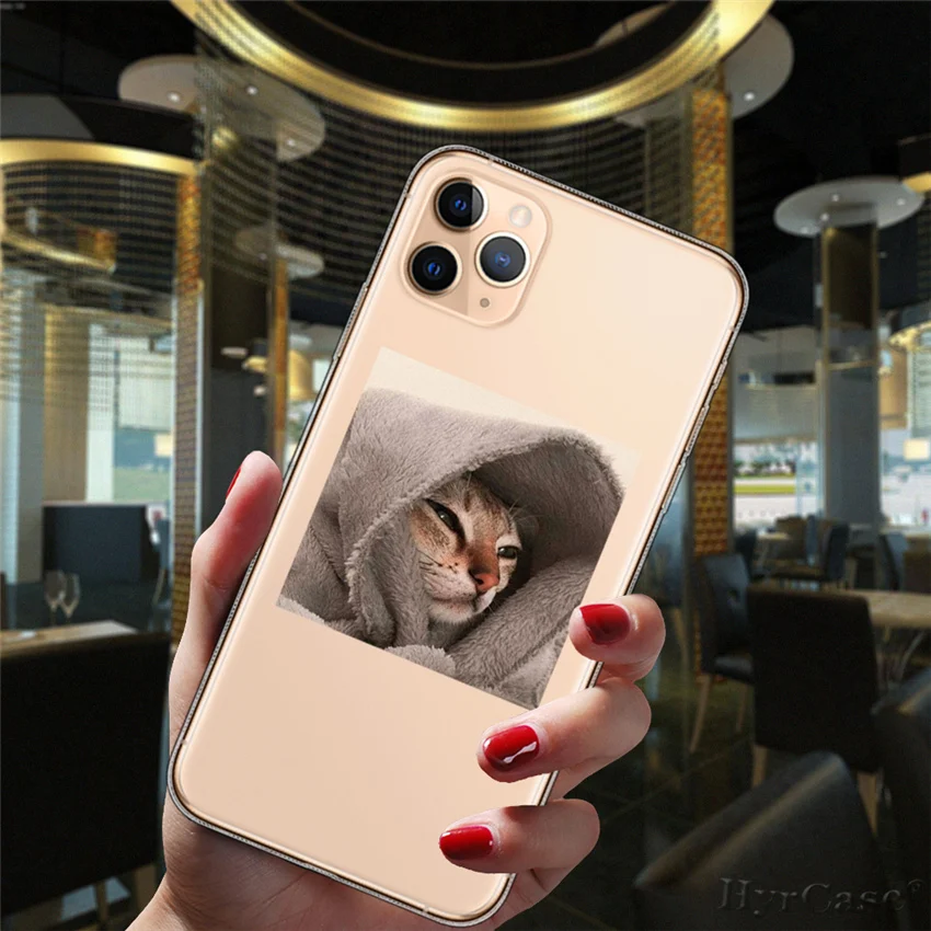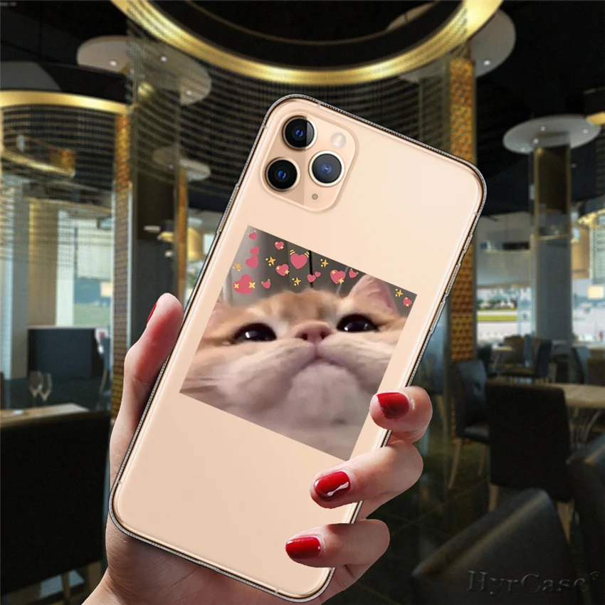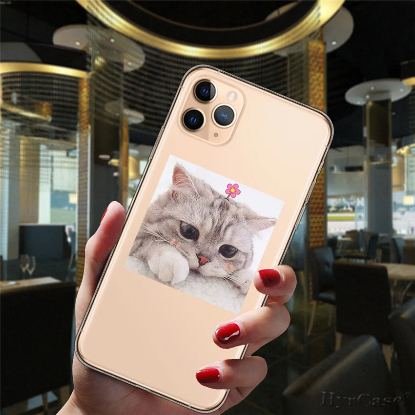 Para iPhone 13 12 11 14 Pro Max Mini 15 Plus 15ProMax funda Popular dibujos animados Cool Cat moda Linda transparente funda de silicona suave