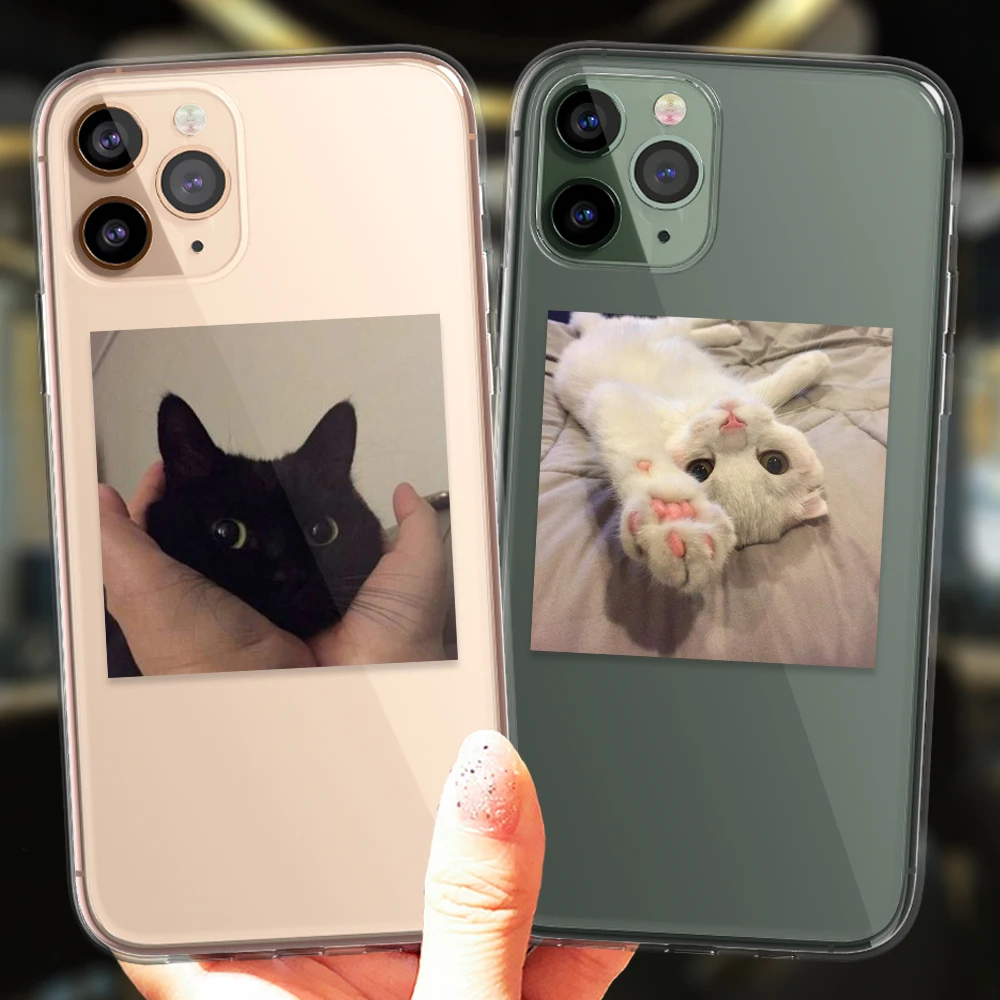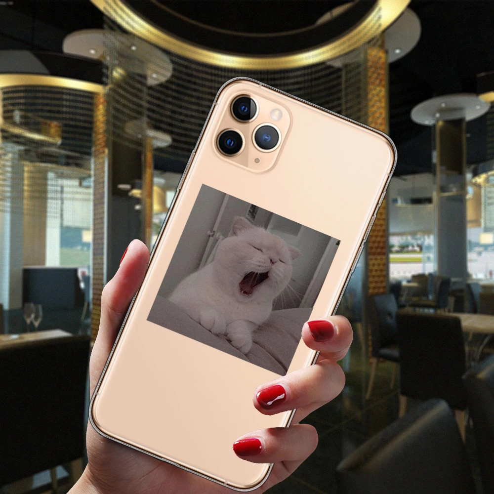 Para iPhone 13 12 11 14 Pro Max Mini 15 Plus 15ProMax funda Popular dibujos animados Cool Cat moda Linda transparente funda de silicona suave