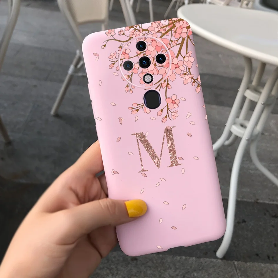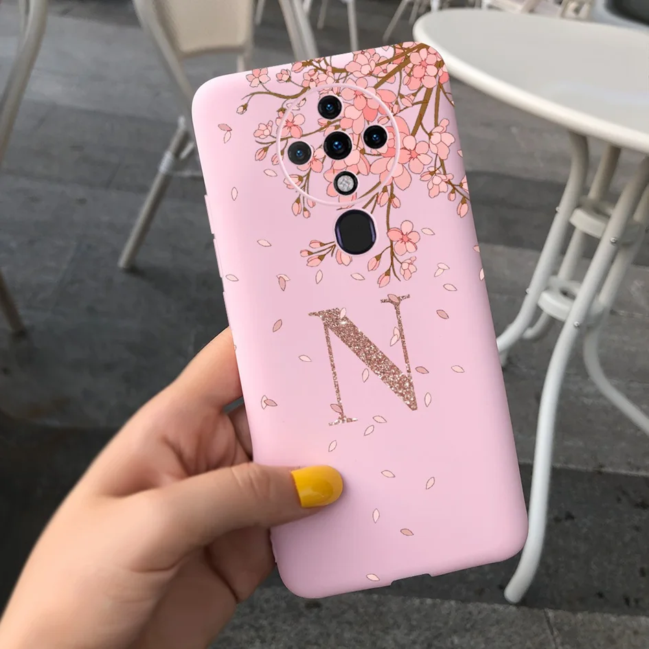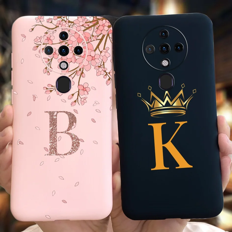 Para Techno Spark 6 2020 KE7 Funda suave corona letras iniciales Funda silicona mate contraportada para Tecno Spark 6 Spark6 parachoques 6,8"