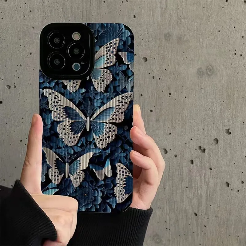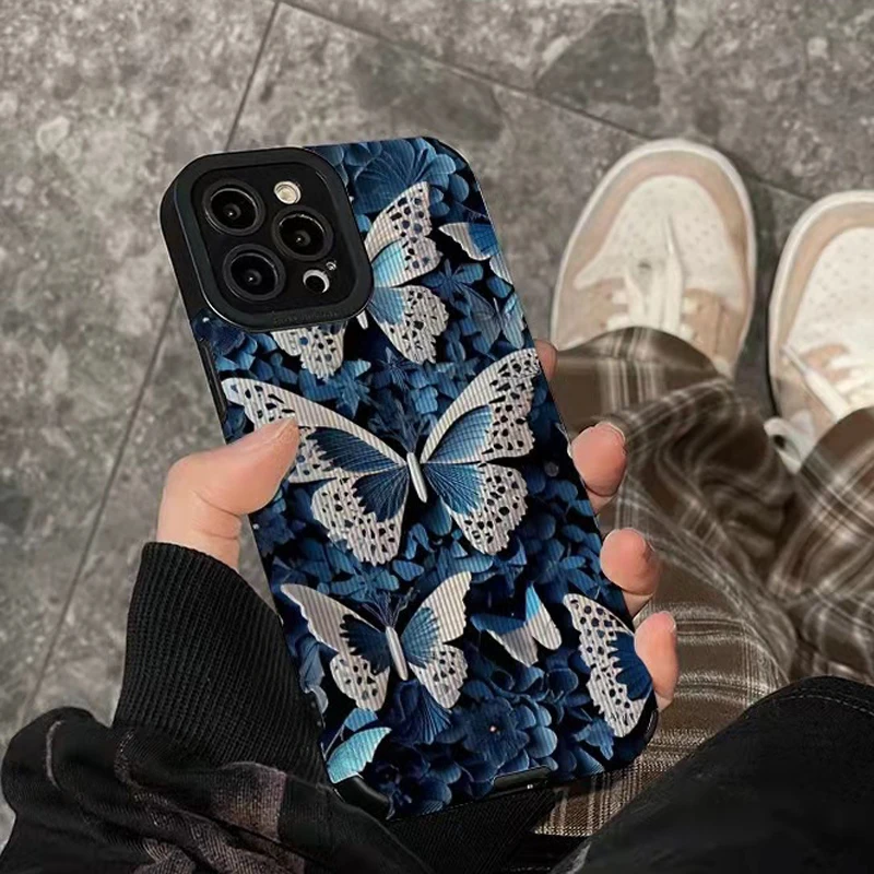 Funda de teléfono de silicona de mariposa azul Retro de lujo para iPhone 14 12 11 13 15 Pro Max Mini X XR XS 7 8 Plus, funda a prueba de golpes