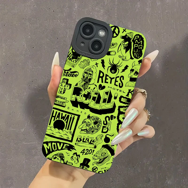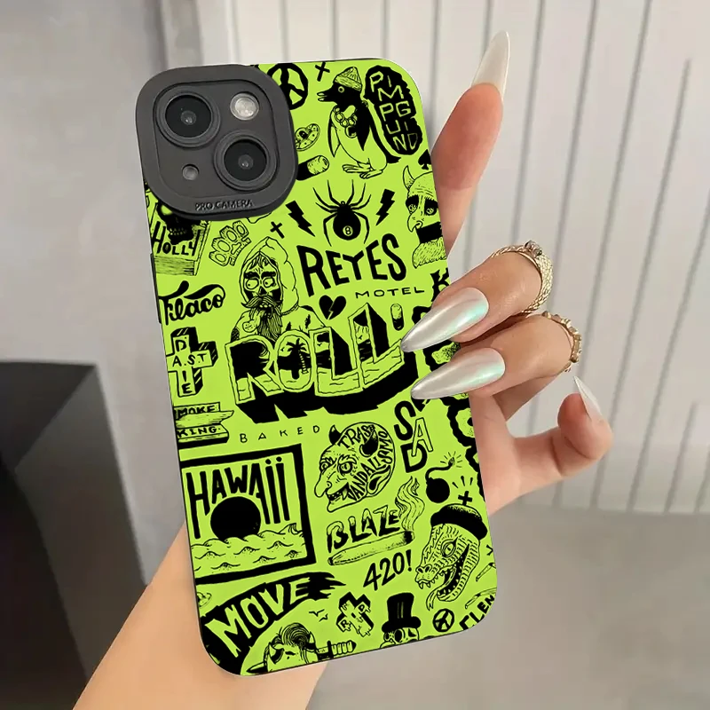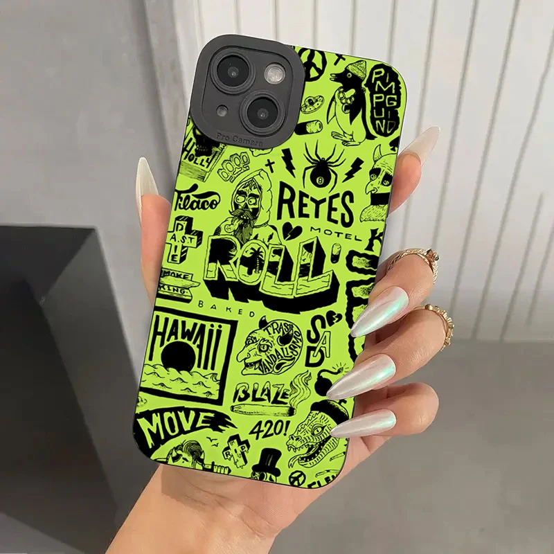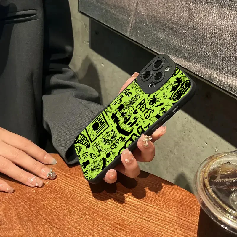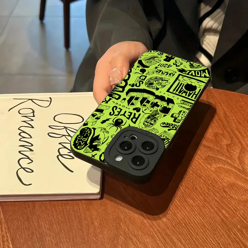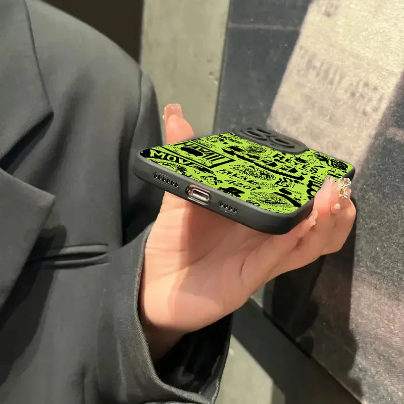 Comprar Funda de silicona para teléfono móvil, carcasa suave a prueba de golpes, color verde fluorescente, inglés, para iPhone 15, 14, 13, 12, 11 Pro Max, XS, X, XR, 7, 8 Plus, 15