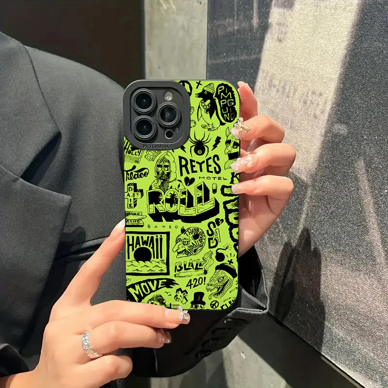 Funda de silicona para teléfono móvil, carcasa suave a prueba de golpes, color verde fluorescente, inglés, para iPhone 15, 14, 13, 12, 11 Pro Max, XS, X, XR, 7, 8 Plus, 15