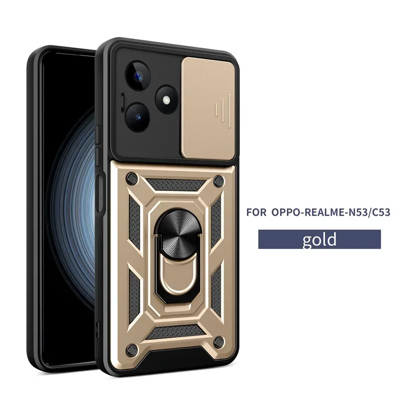 Funda de silicona para teléfono Realme C53 C33 C51 C35 C55 C63 C71 C67 C65 5G 4G, protección de cámara deslizante, armadura, cubierta de anillo de soporte magnético
