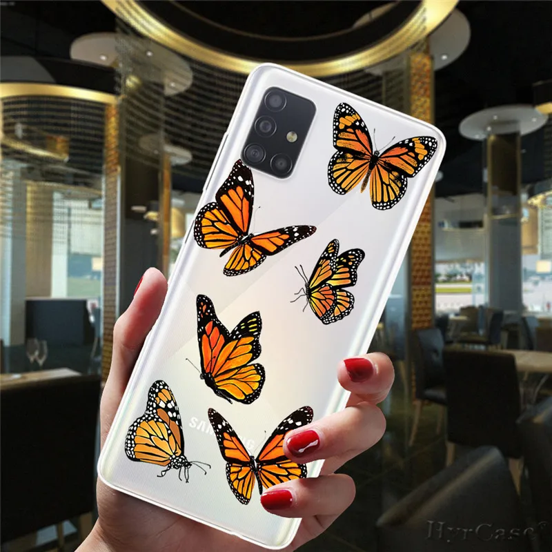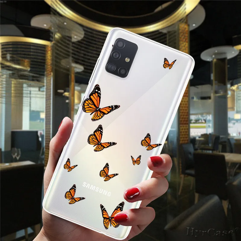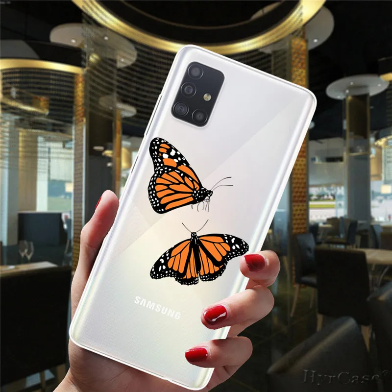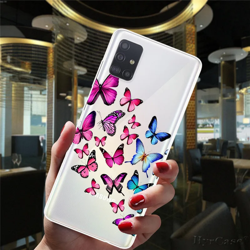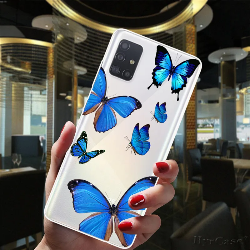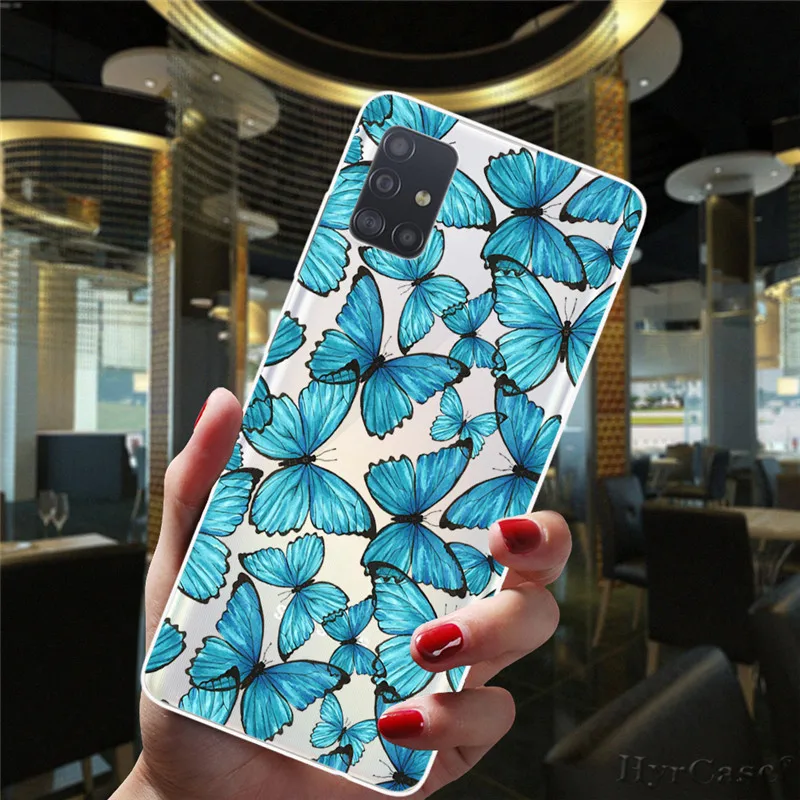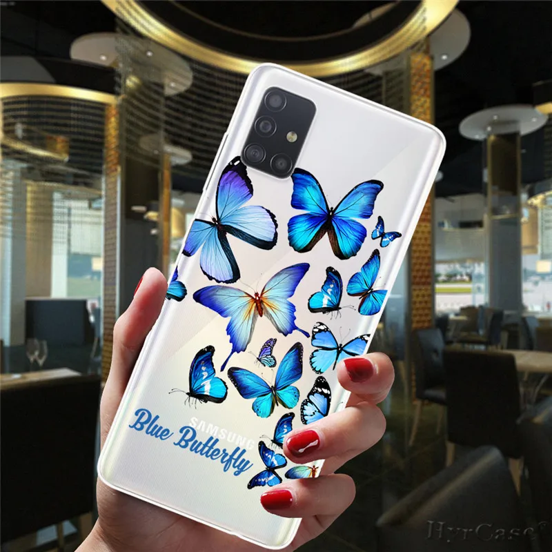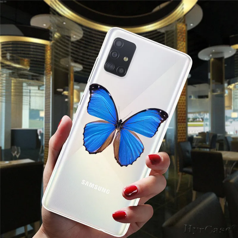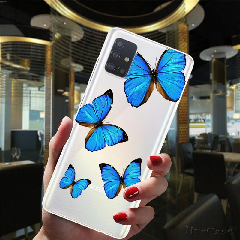 Azul lindo hermosa mariposa cubierta de la caja del teléfono de silicona para Samsung A51 A71 A01 A10 A11 A21S A30 A31 A40 A41 A50 A60 A70 A7 A9