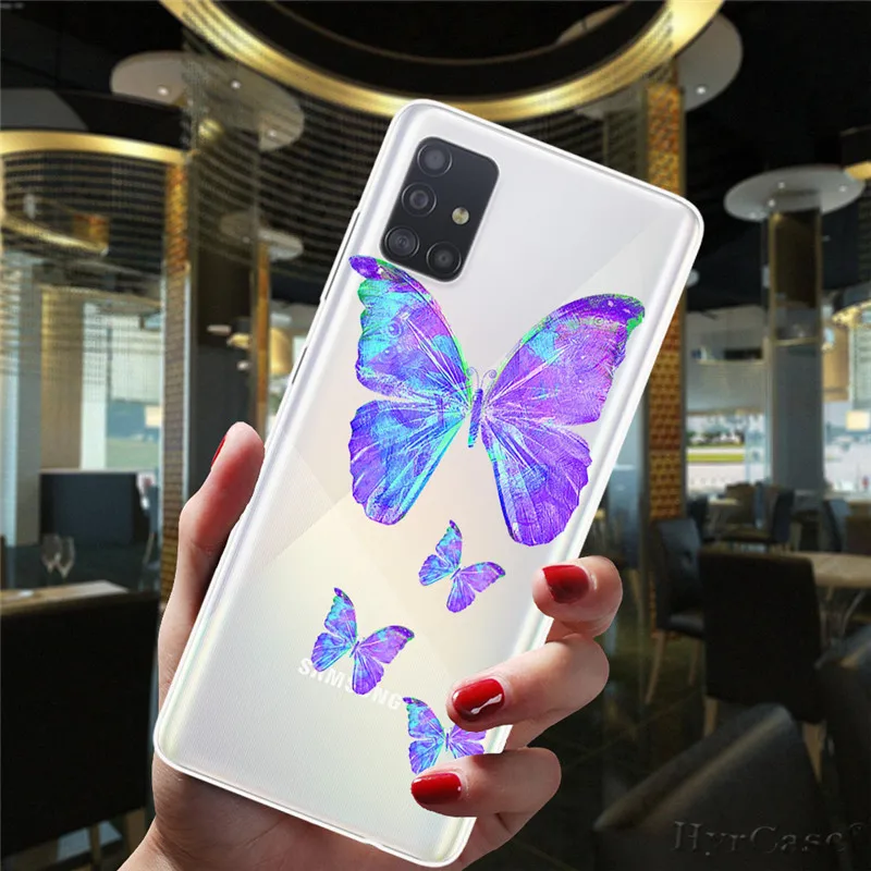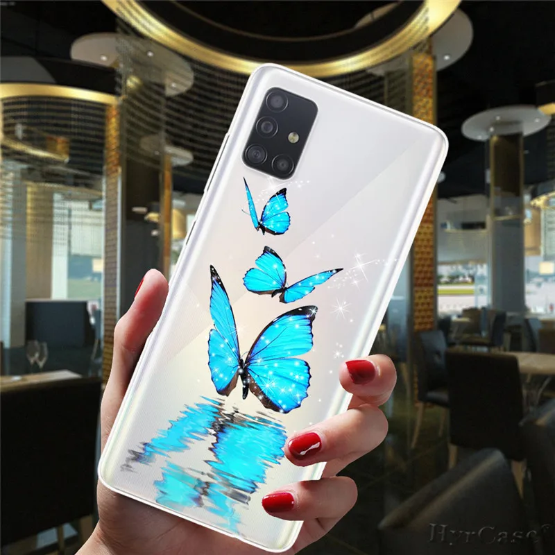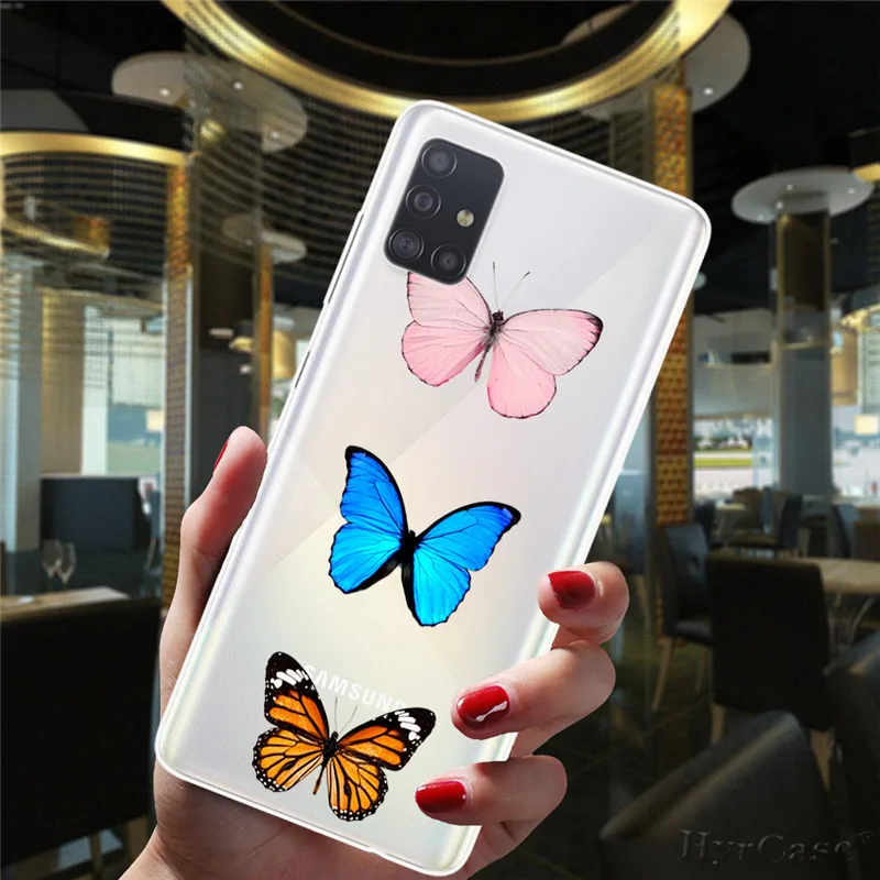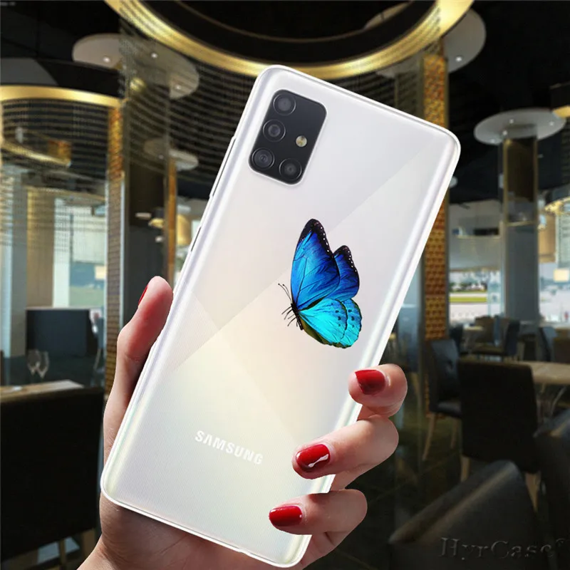 Comprar Funda de silicona para teléfono Samsung, carcasa bonita de mariposa azul para Samsung A51, A71, A01, A10, A11, A21S, A30, A31, A40, A41, A50, A60, A70, A7, A9.