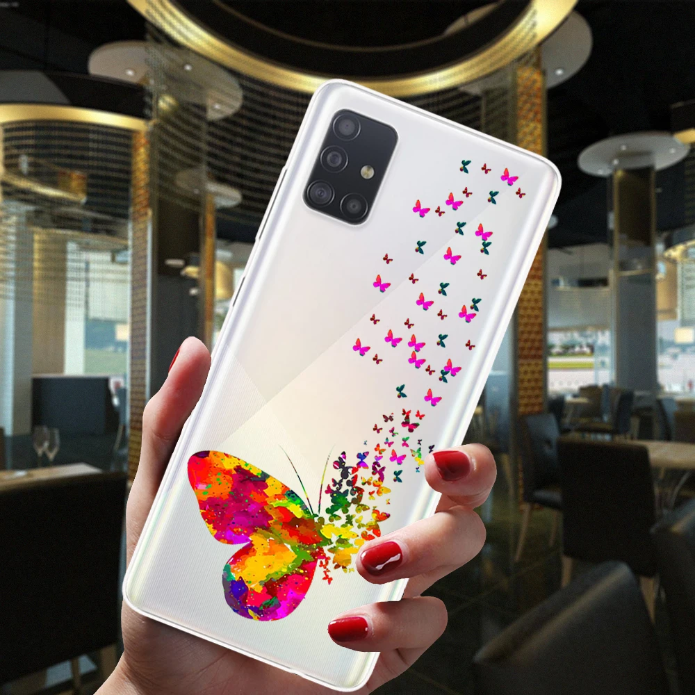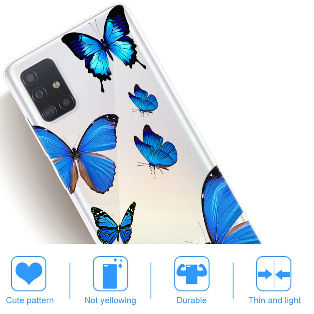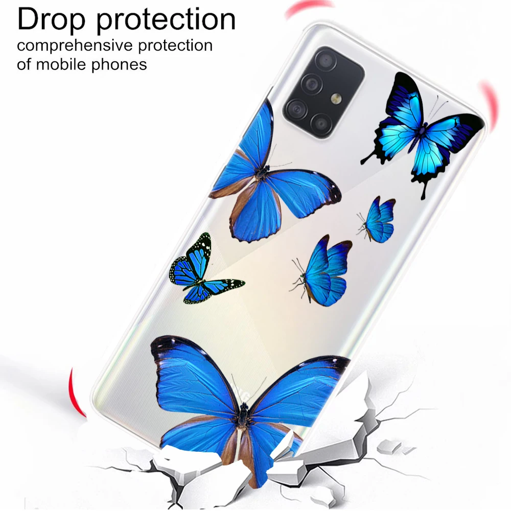 Comprar Funda de silicona para teléfono Samsung, carcasa bonita de mariposa azul para Samsung A51, A71, A01, A10, A11, A21S, A30, A31, A40, A41, A50, A60, A70, A7, A9.