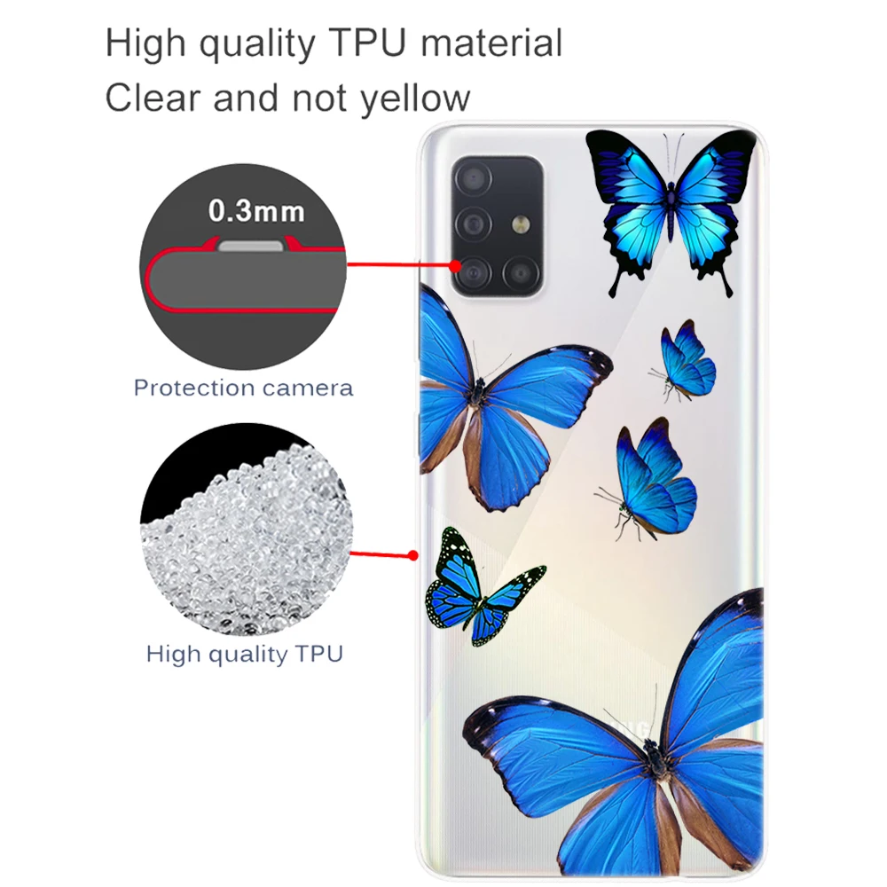 Azul lindo hermosa mariposa cubierta de la caja del teléfono de silicona para Samsung A51 A71 A01 A10 A11 A21S A30 A31 A40 A41 A50 A60 A70 A7 A9