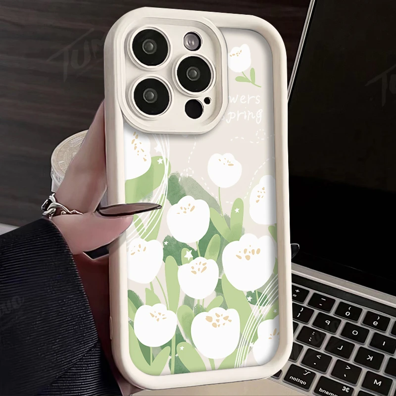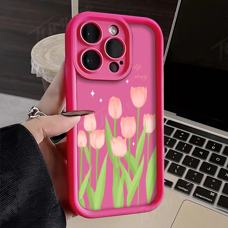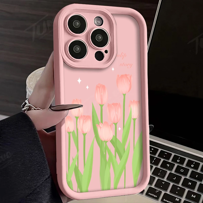 Funda de silicona para teléfono Samsung Galaxy, carcasa con diseño de flor de tulipán blanco y rosa para S24 Ultra S23 FE S22 S21 Plus FE A54 A34 A14 A73 A53 A33 5G