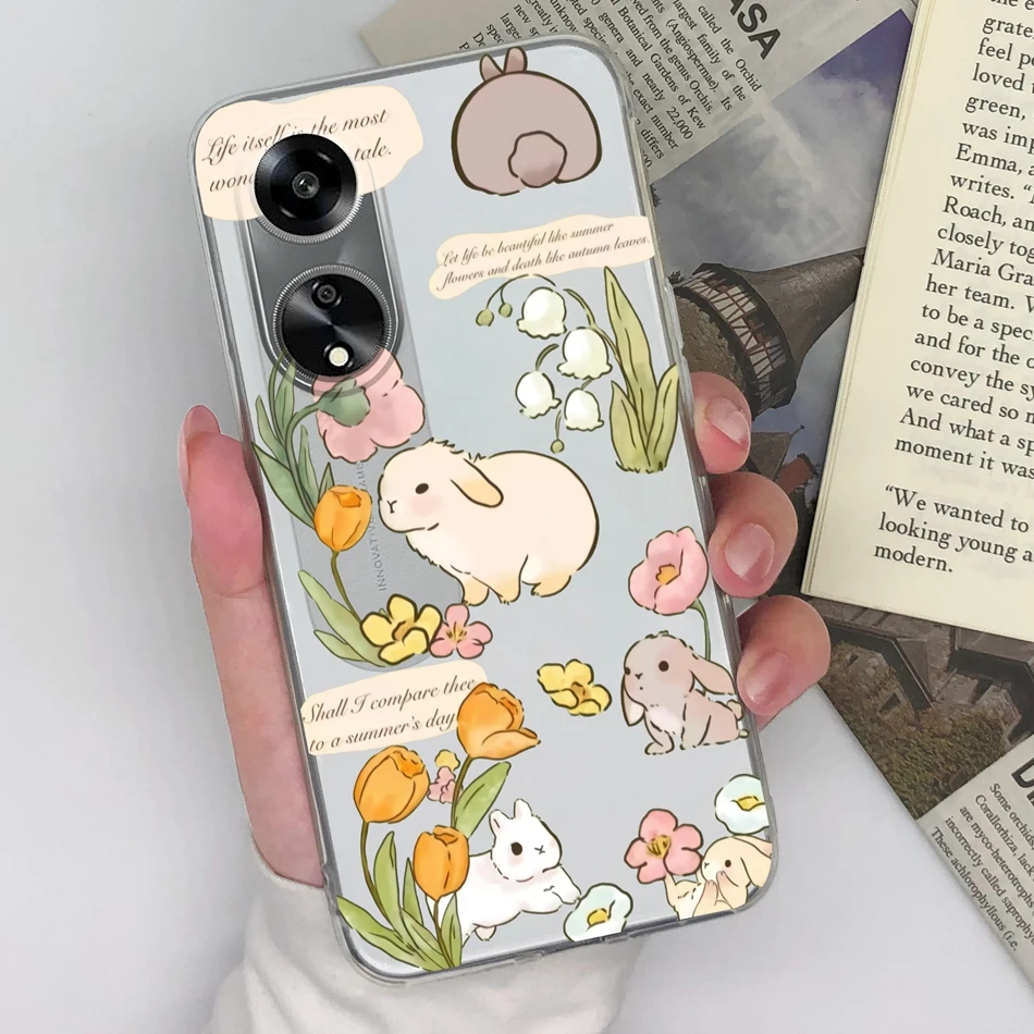 Comprar Funda de silicona transparente A prueba de golpes para Oppo A1, 5G, A17k, 4G, lindo Conejo, azul, Funda trasera para teléfono, Oppo A 1, 17 K, Delgado, TPU, parachoques