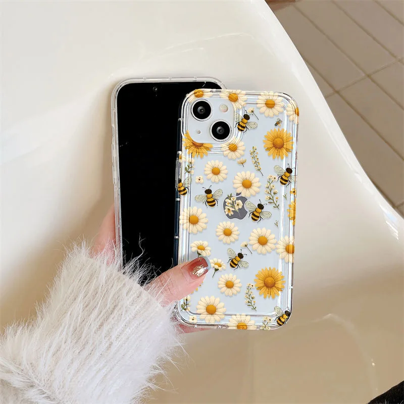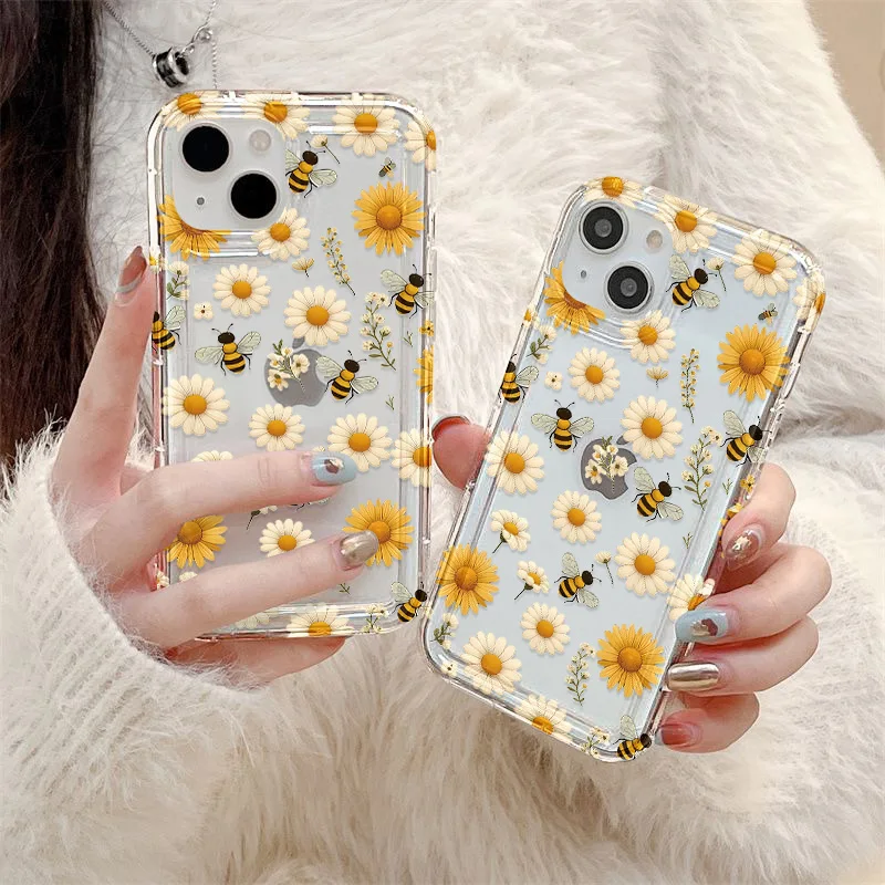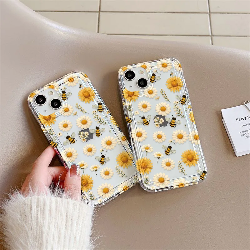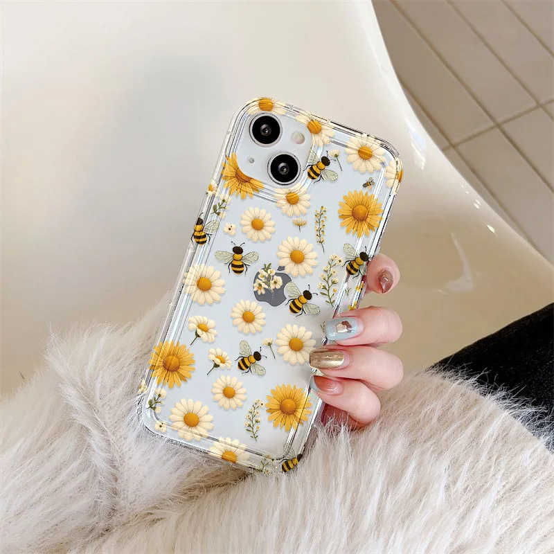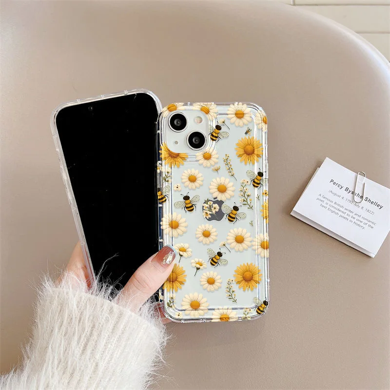 Funda de silicona transparente con flores para iPhone 13, funda para iPhone 16 Pro Max 15 14 Plus 17 Air 13 12 11 X XS Max XR 7 8 SE, carcasa transparente