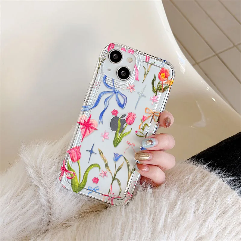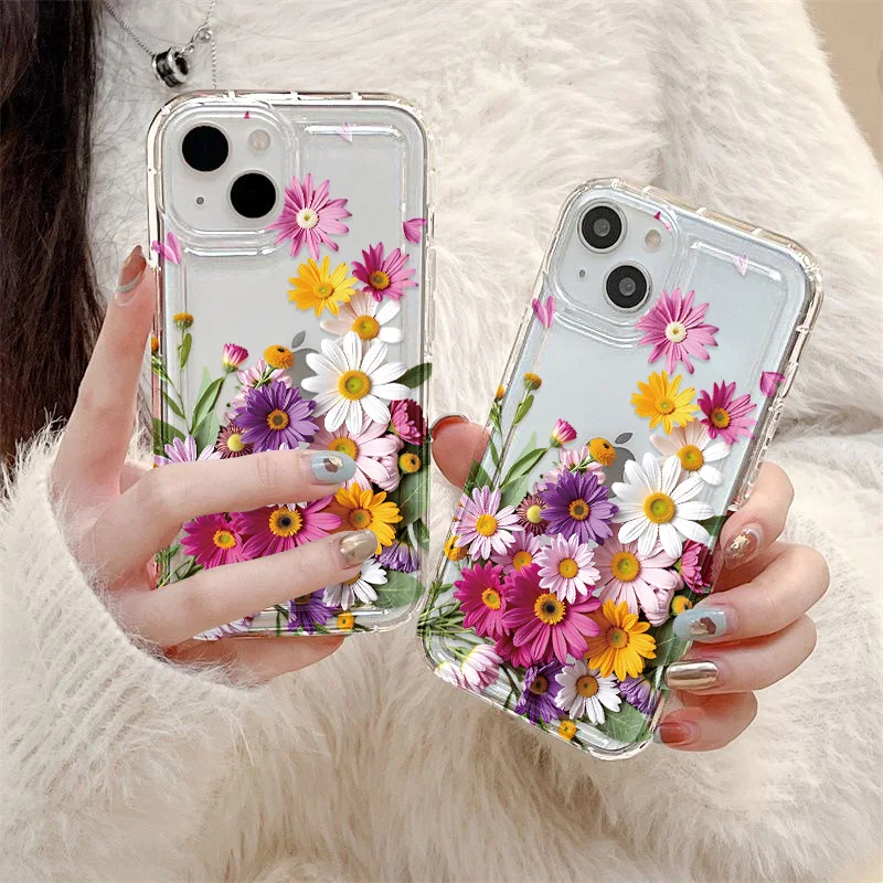 Funda de silicona transparente con flores para iPhone 13, funda para iPhone 16 Pro Max 15 14 Plus 17 Air 13 12 11 X XS Max XR 7 8 SE, carcasa transparente