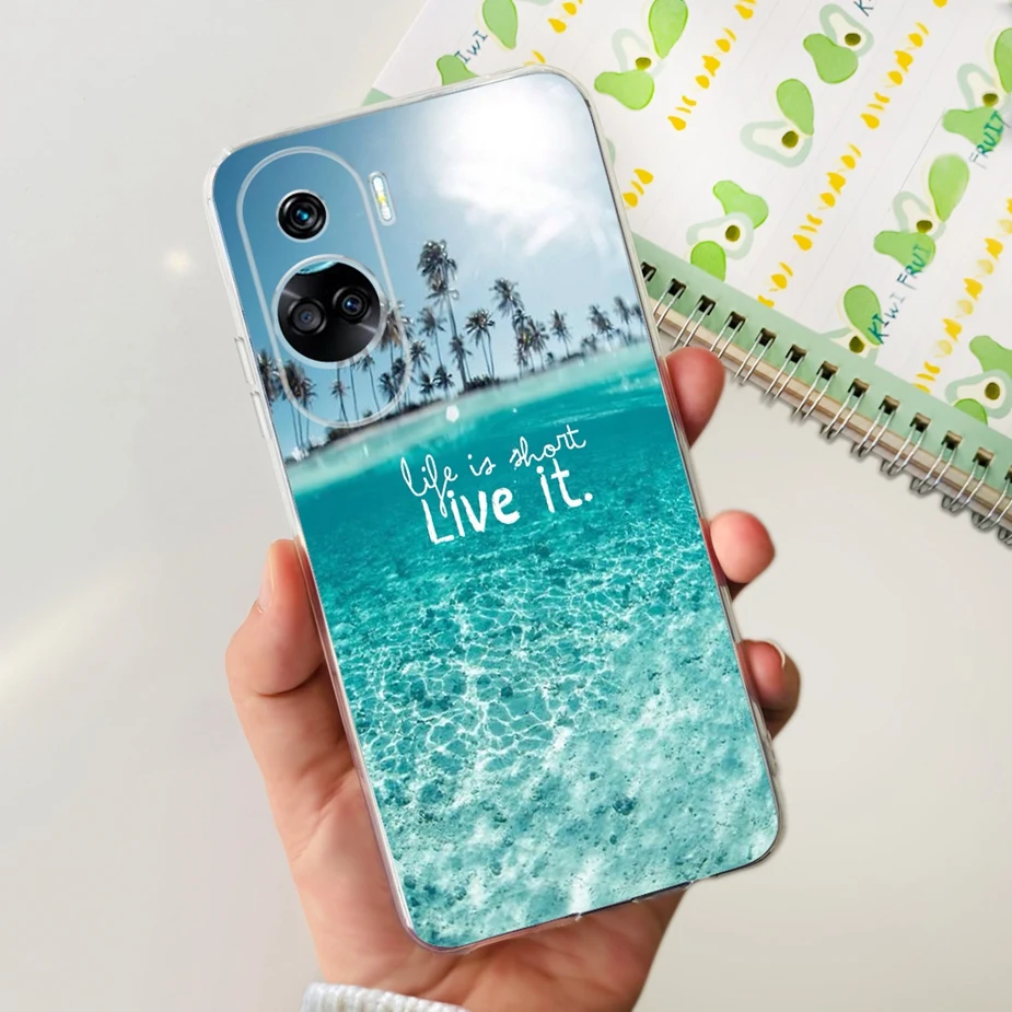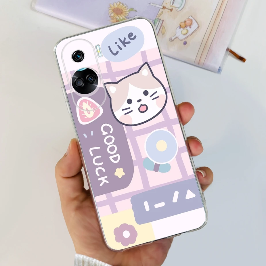 Comprar Funda de silicona transparente para Honor 90 Lite, carcasa trasera pintada de lujo, suave, TPU, CRT-NX1