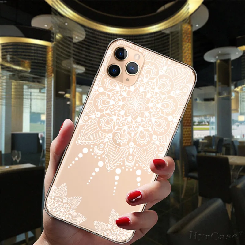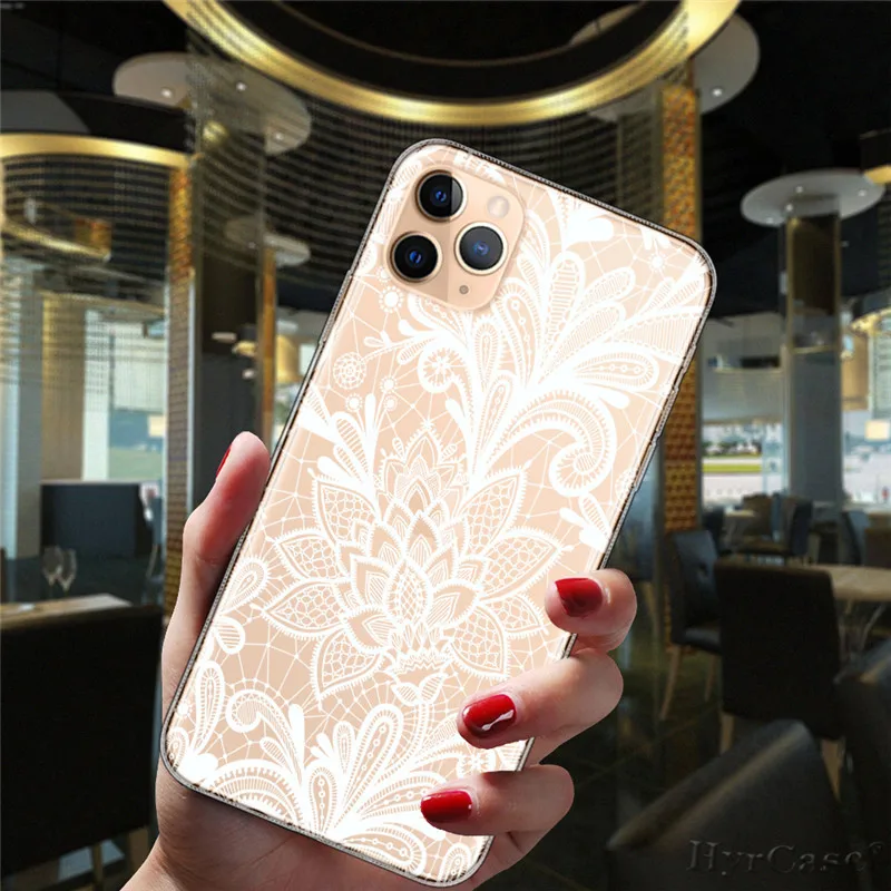 Comprar Funda de silicona transparente para iPhone 13, 12, 11, 14 Pro Max, Mini, 15 Plus, 15Pro Max, flor de encaje, Floral, Vintage, blanco, Sexy