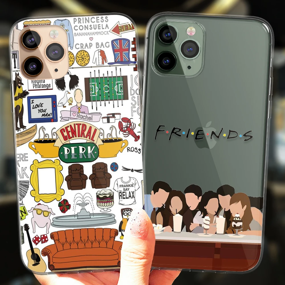 Funda de silicona transparente para iPhone 13 12 11 14 Pro Max Mini 15 Plus 15ProMax Popular Friends TV Show Central Perk Coffee