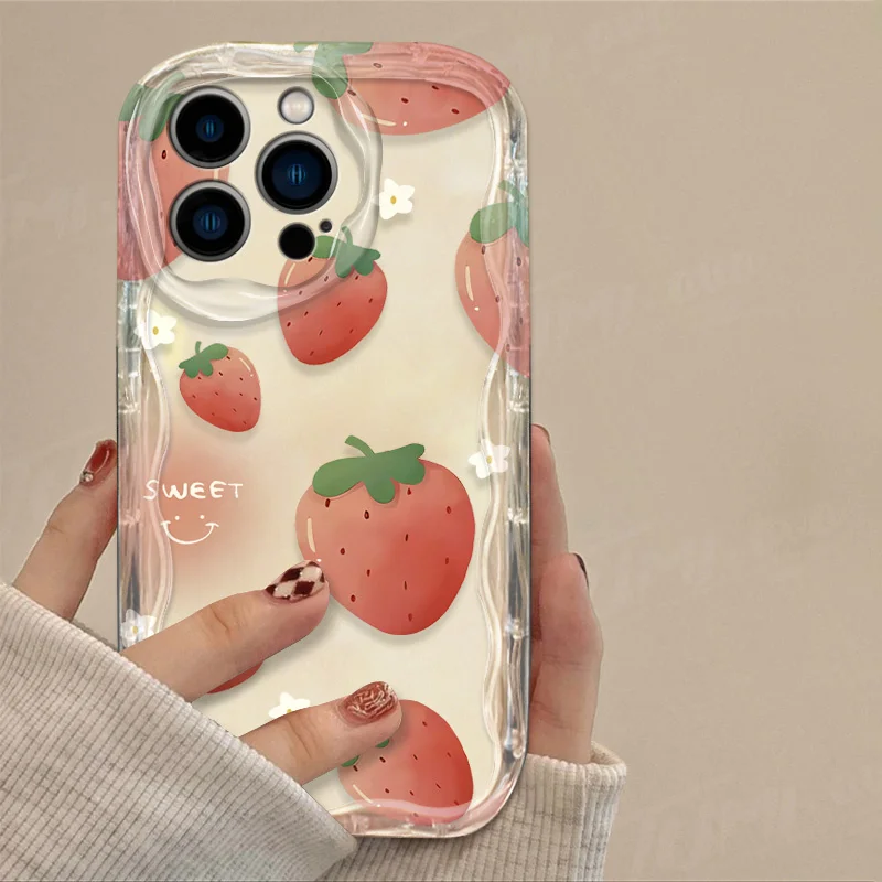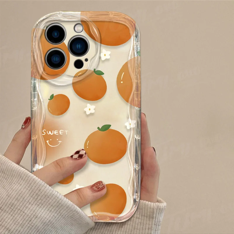 Funda de silicona transparente para iPhone, carcasa con forma de fresa, fruta naranja, onda 3D, 15, 14, 13, 12, 11 Pro Max, X, XR, XS, 8, 7, 6, 6S Plus, SE, 2020