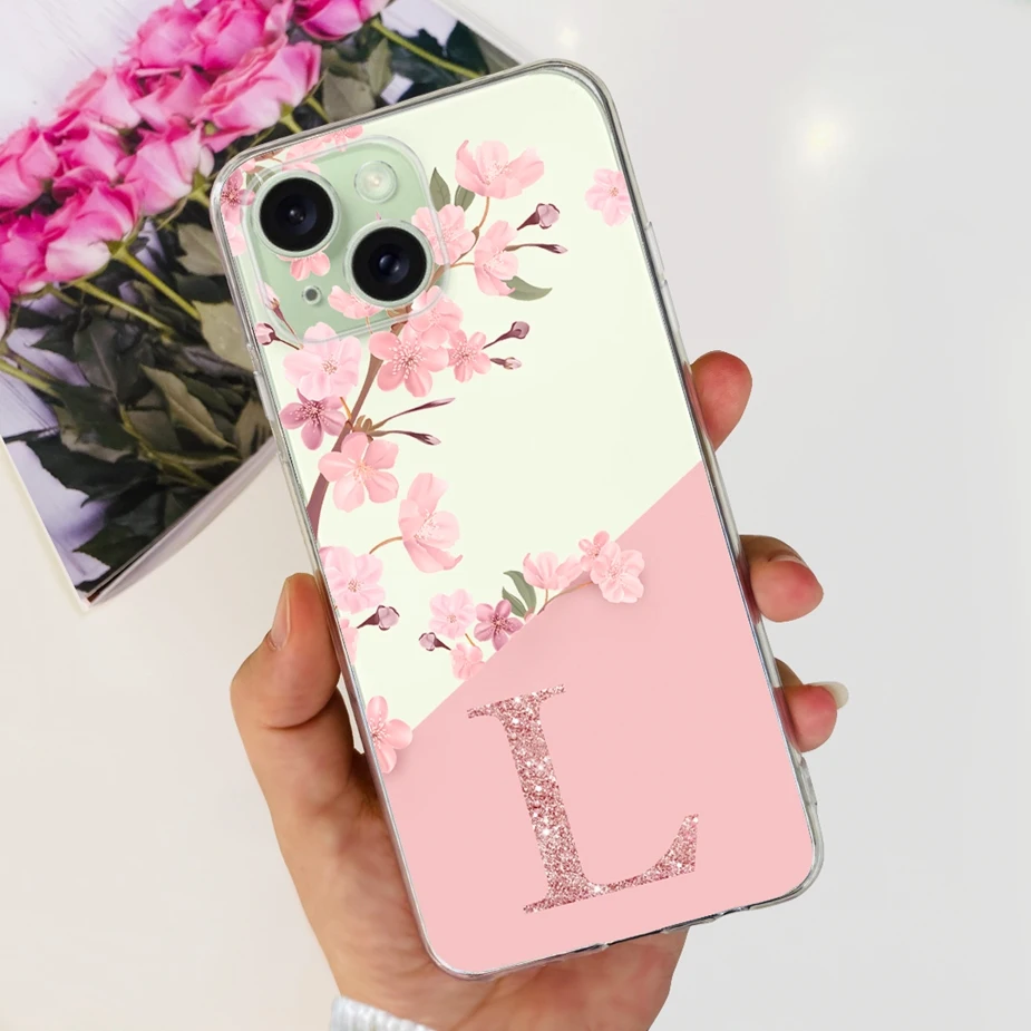 Comprar Funda de silicona transparente con letras para iPhone, carcasa de TPU suave para iPhone 15 Pro Max, iPhone 15 Plus