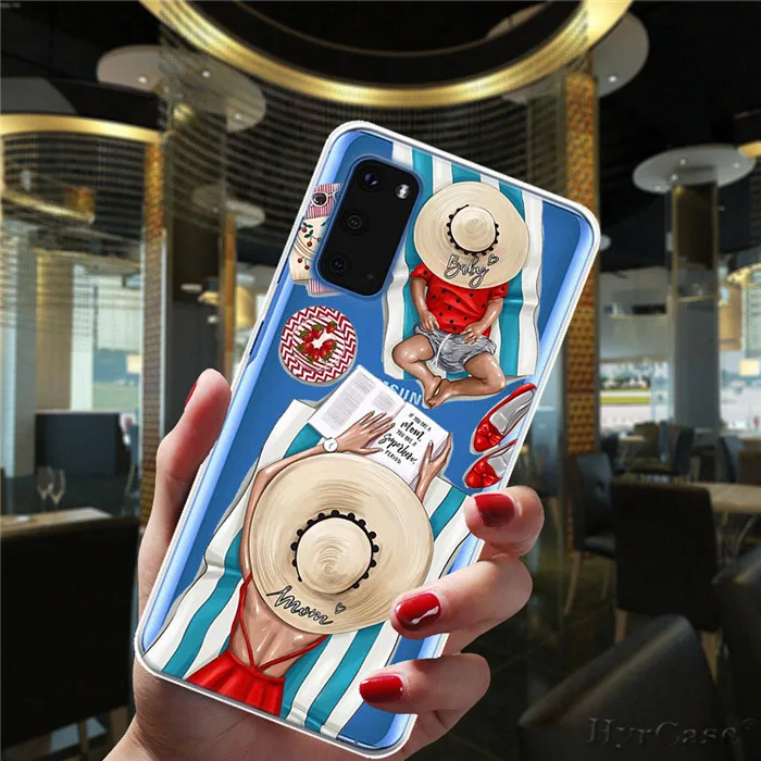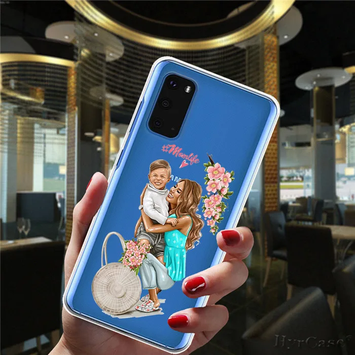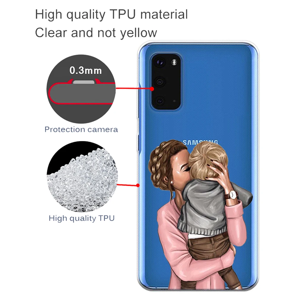 Funda de silicona transparente con pelo castaño negro para Samsung Galaxy S20 S10 S9 S8 Plus S7 S6 Edge S20 Ultra S10E