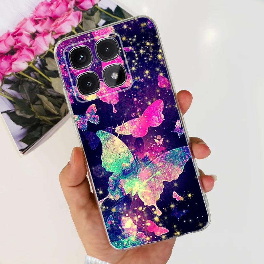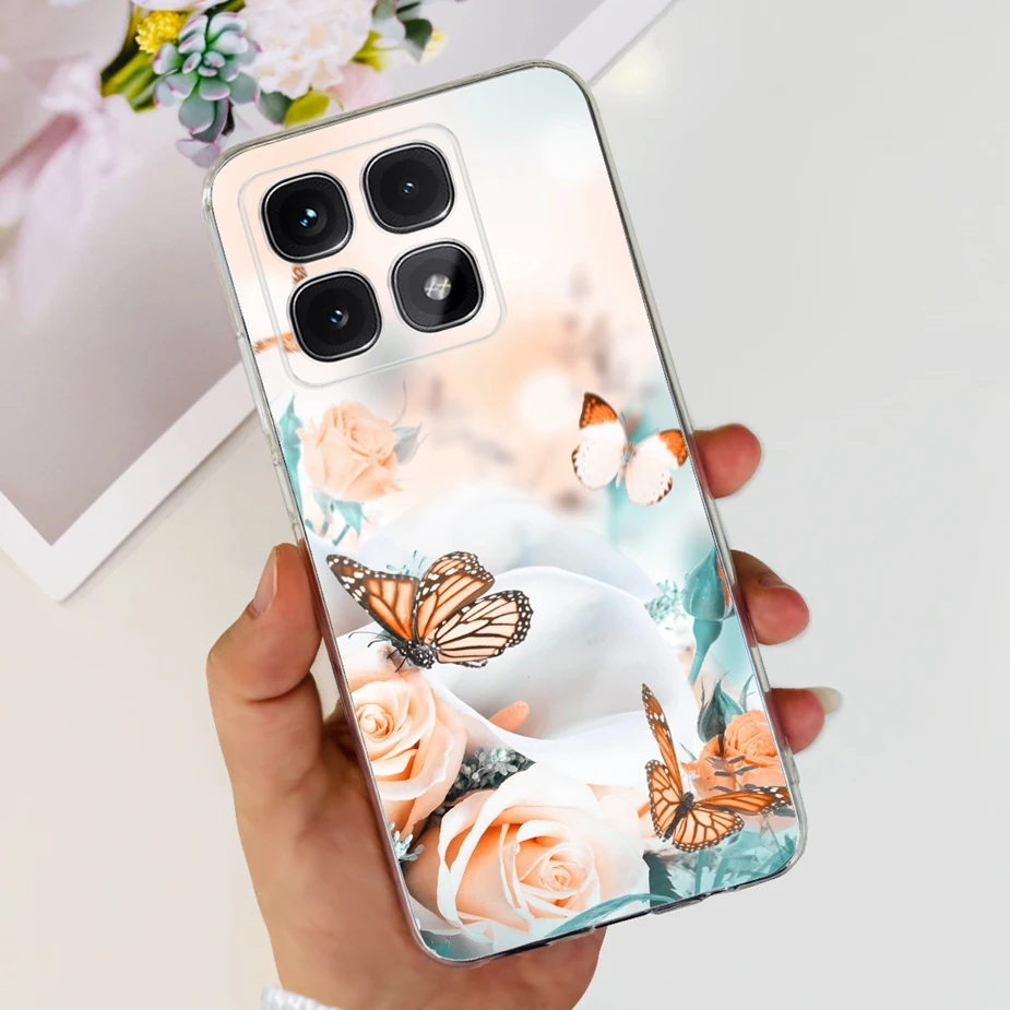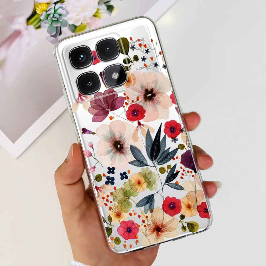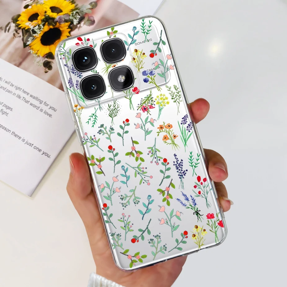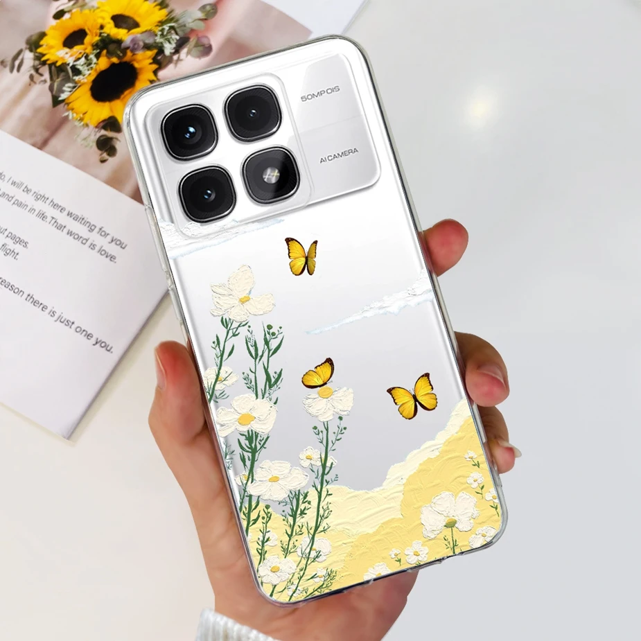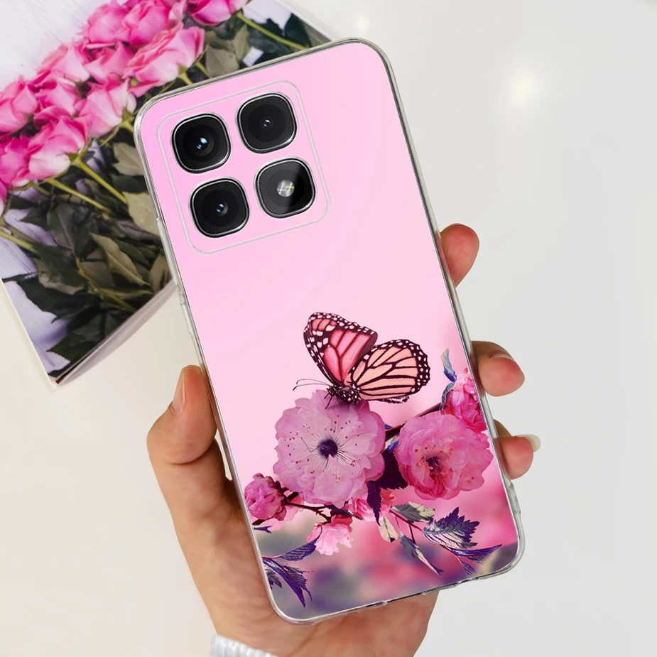 Para xiaomi Mi 14T Pro Case Cute Cat Flowers Painted Cover Funda de silicona transparente para Xiaomi 14T Pro 14TPro Mi14T Carcasa suave