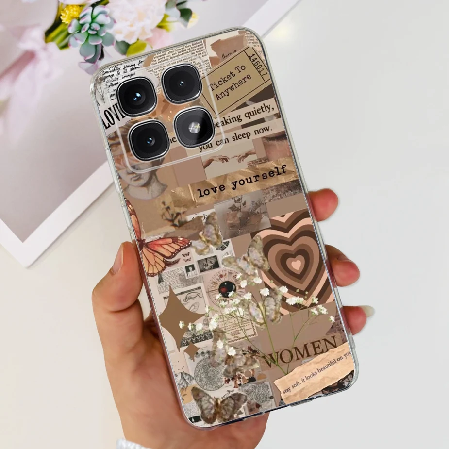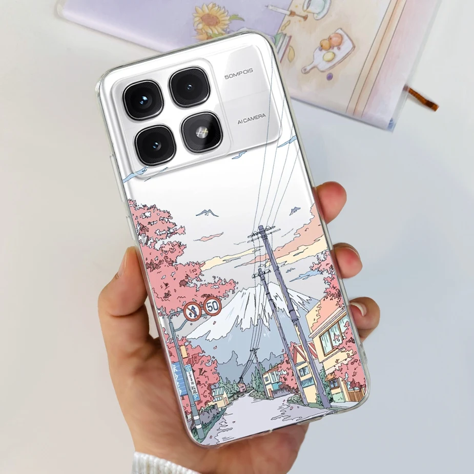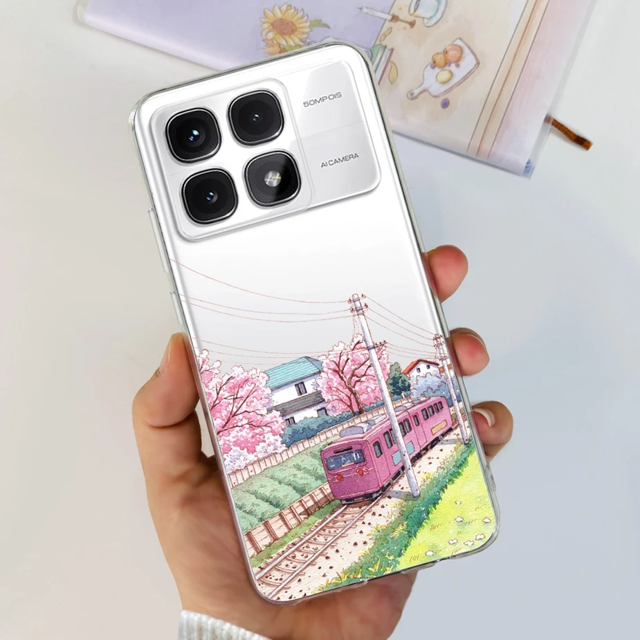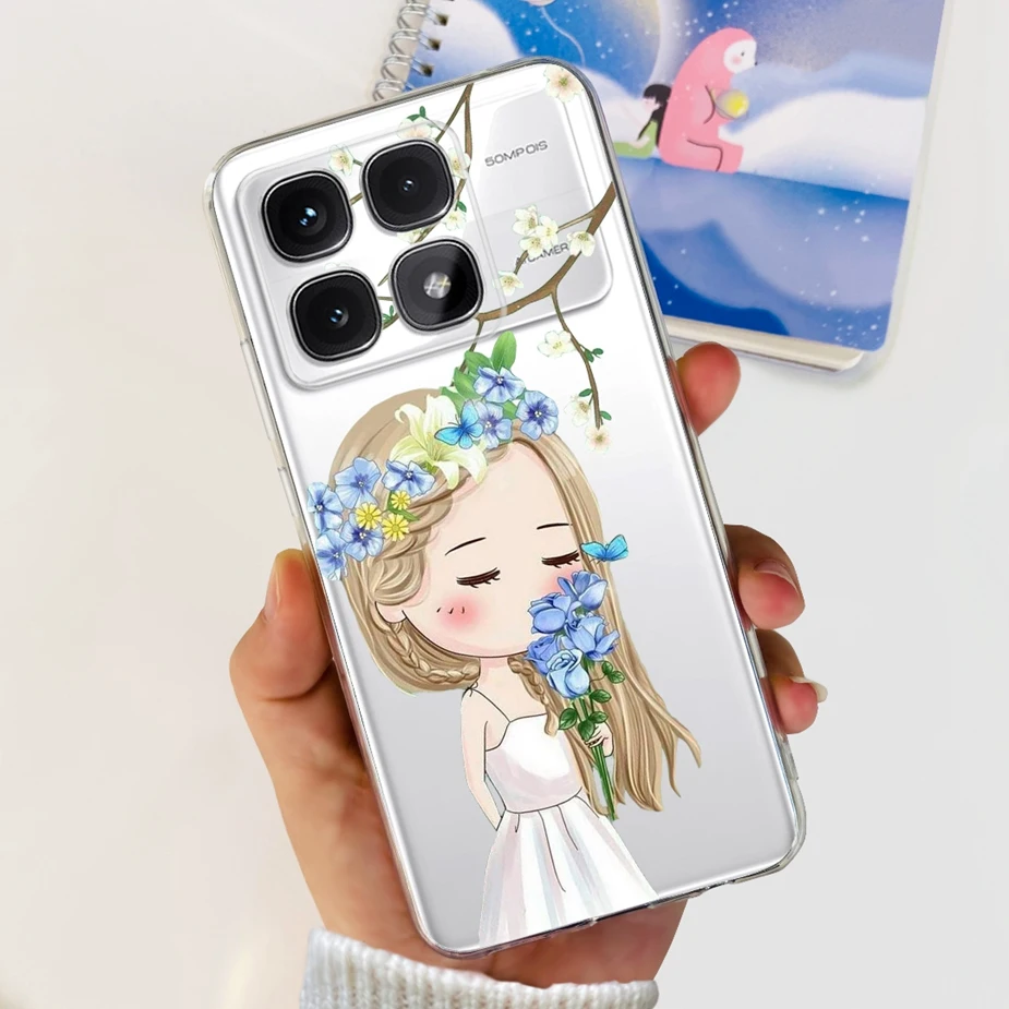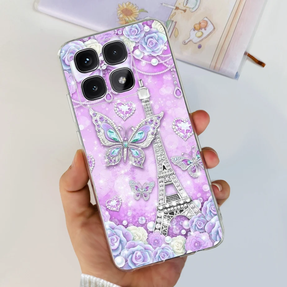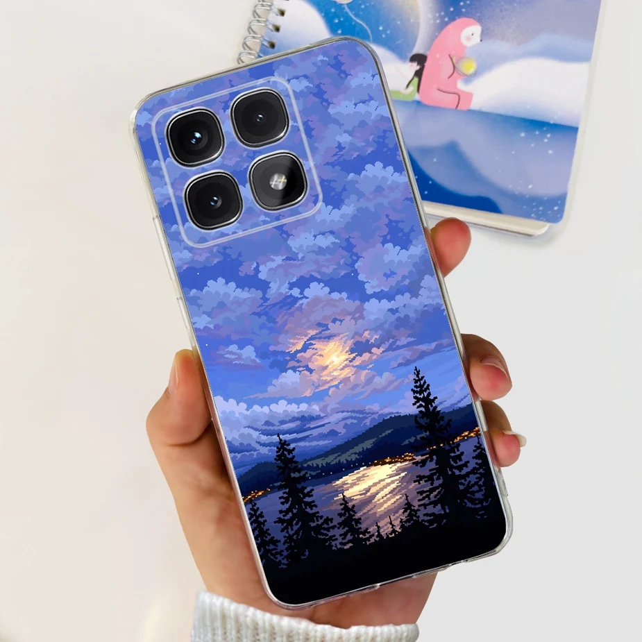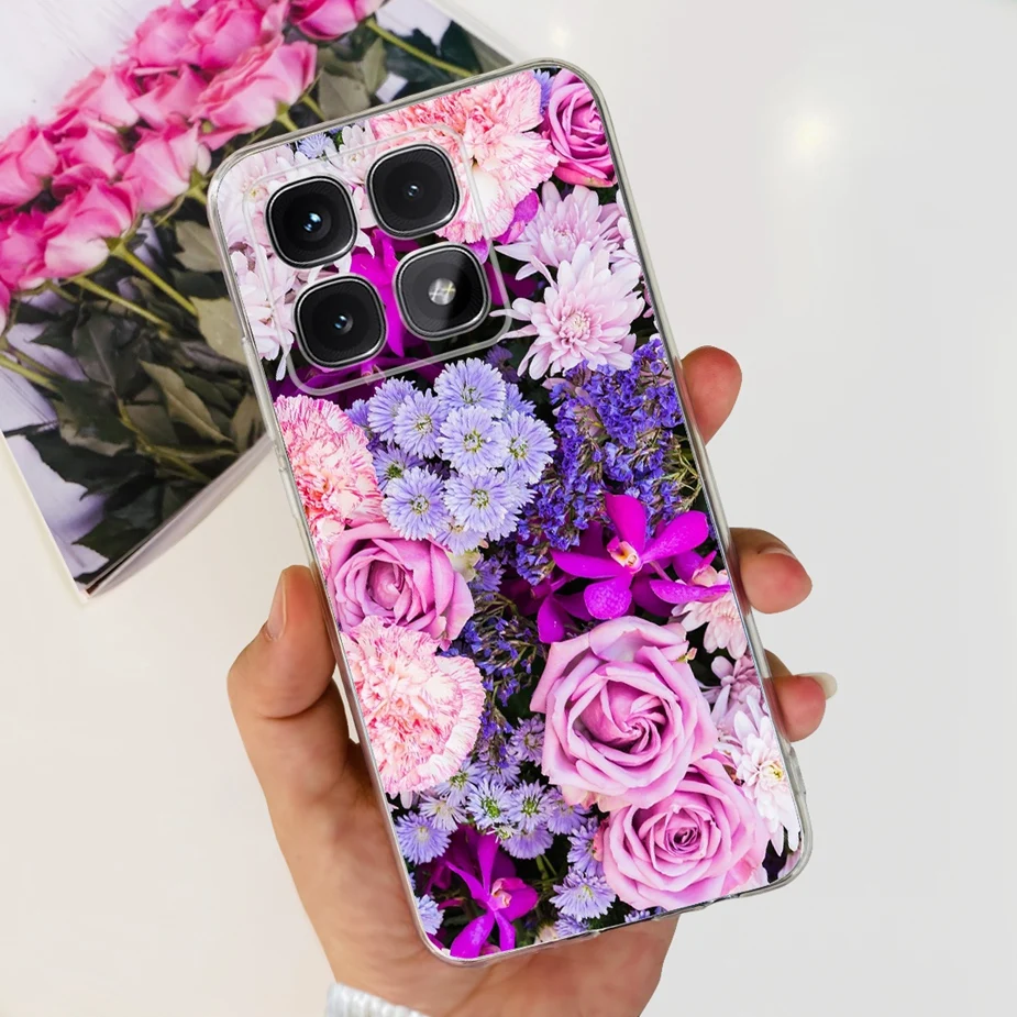 Para xiaomi Mi 14T Pro Case Cute Cat Flowers Painted Cover Funda de silicona transparente para Xiaomi 14T Pro 14TPro Mi14T Carcasa suave