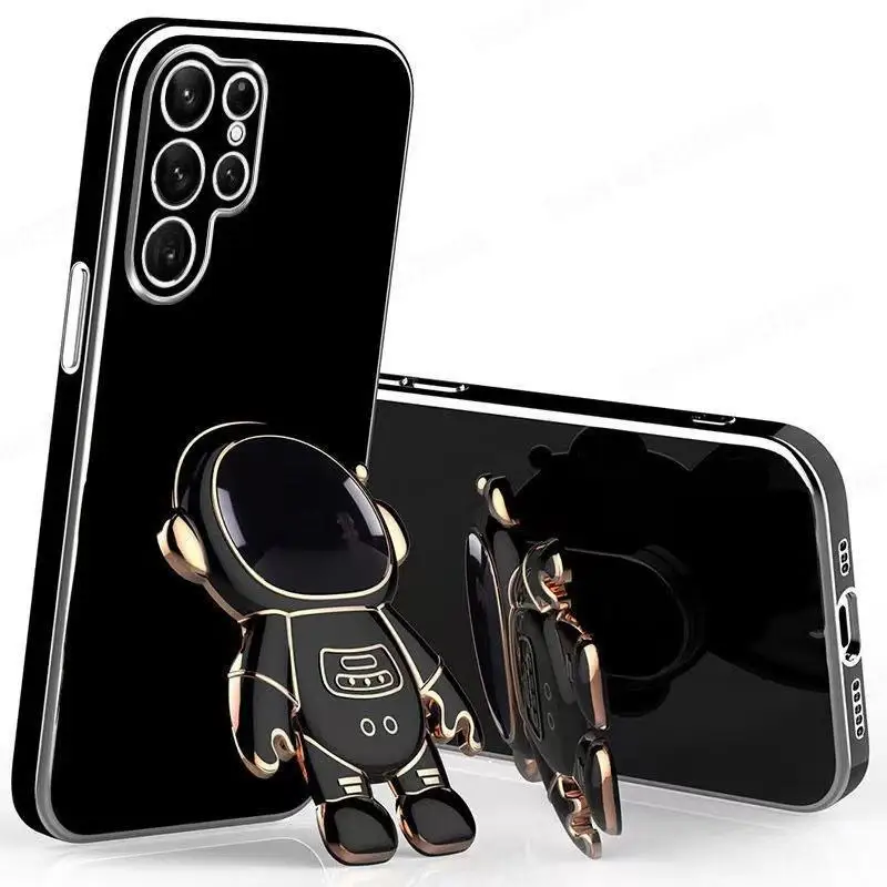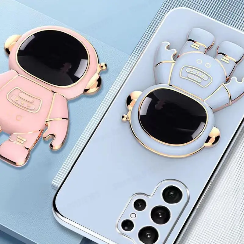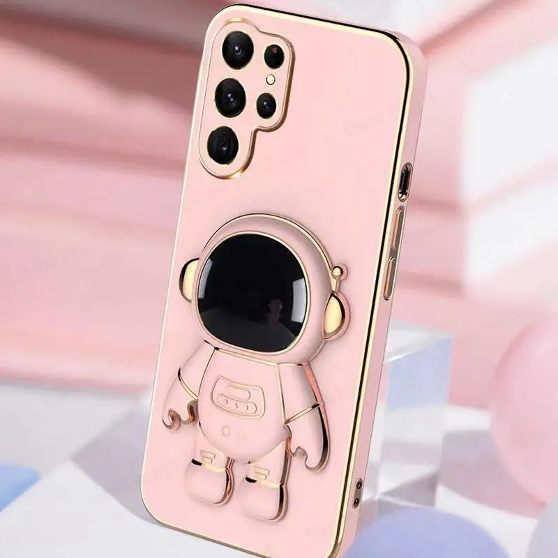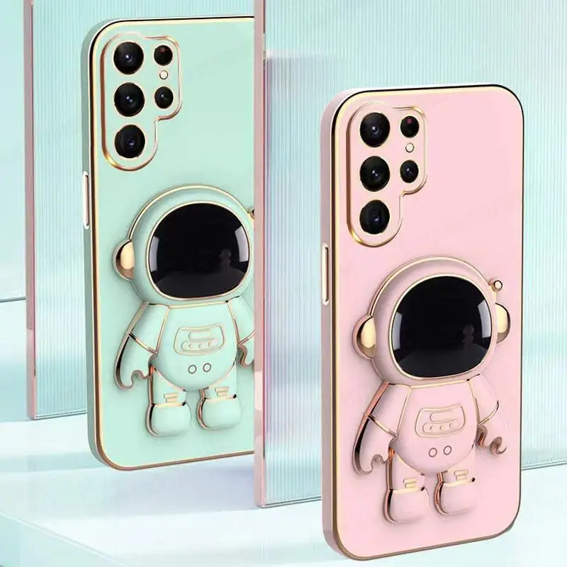 Para Samsung S23 Ultra 3D dibujos animados astronauta soporte chapado funda para Galaxy S21FE S21 S20 Plus S20 funda de teléfono de silicona Ultra suave