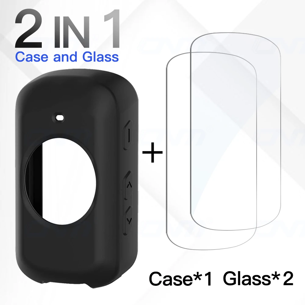 2 uds vidrio templado + funda de silicona para Garmin Edge 840 530 830 1040 1030 520 130 Plus cubierta protectora de pantalla para cronómetro GPS