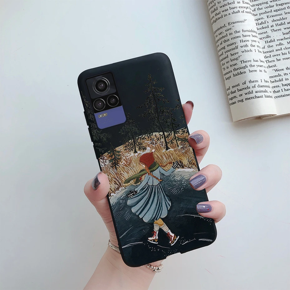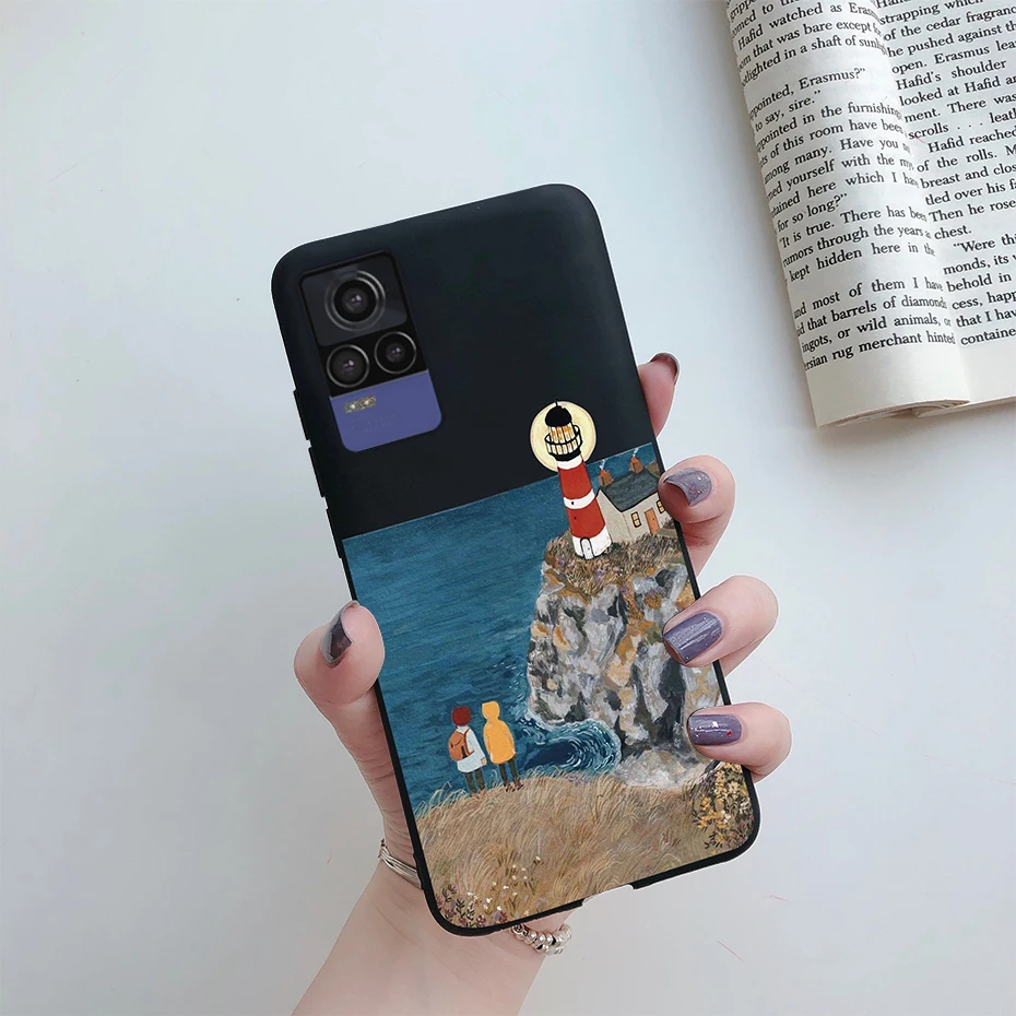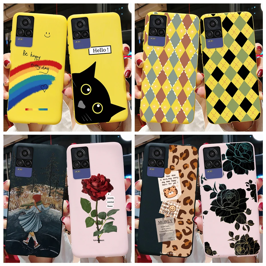 Para Vivo V21e funda V2061 silicona Linda pintada Caramelo Suave delgada cubierta trasera teléfono fundas para Vivo V21e V 21 e 4G parachoques a prueba de golpes
