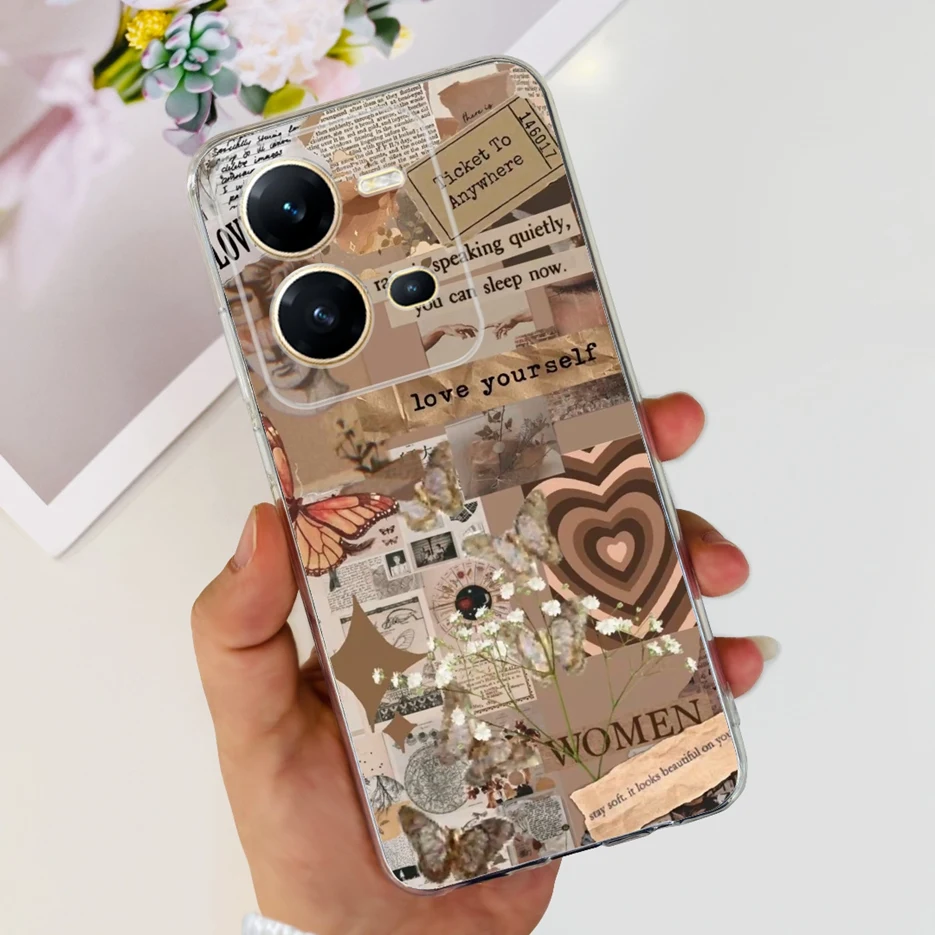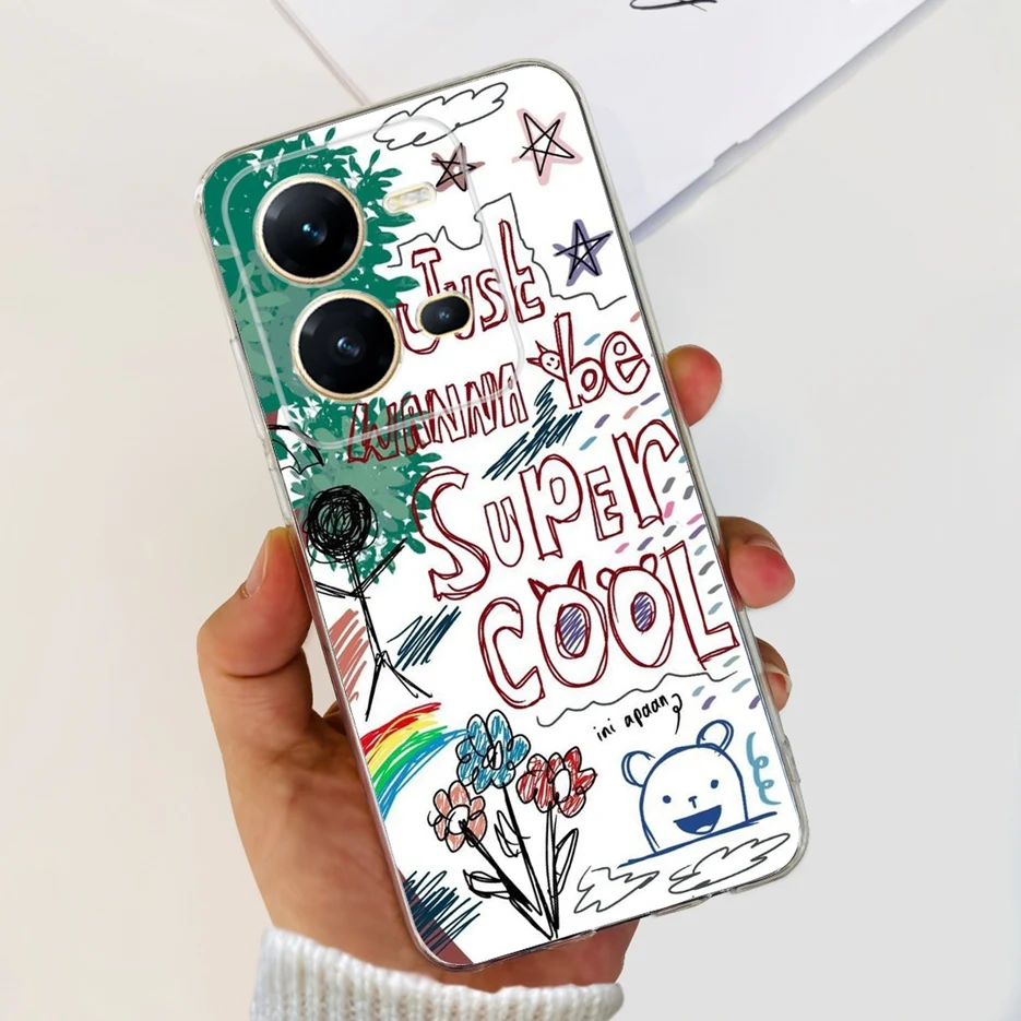 Comprar Funda de silicona para Vivo V25 V25e V2201 V2202, cubierta pintada con estilo, suave, TPU, parachoques