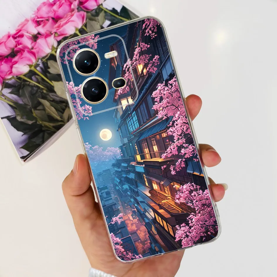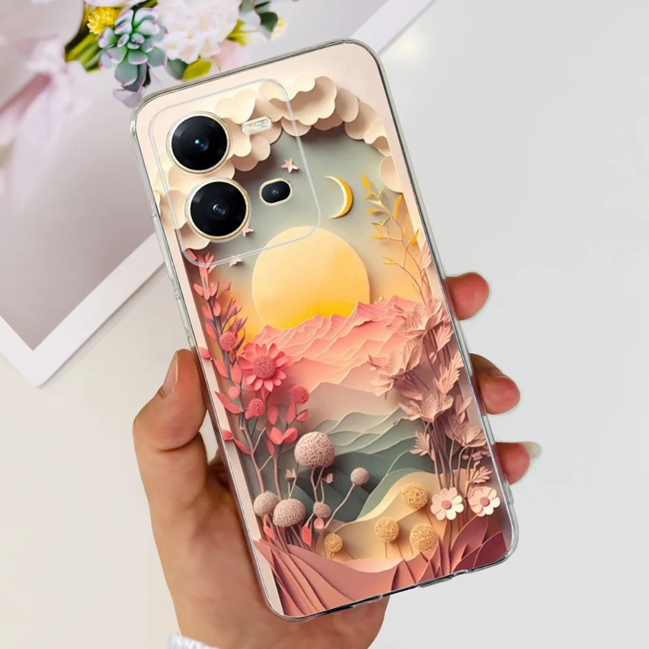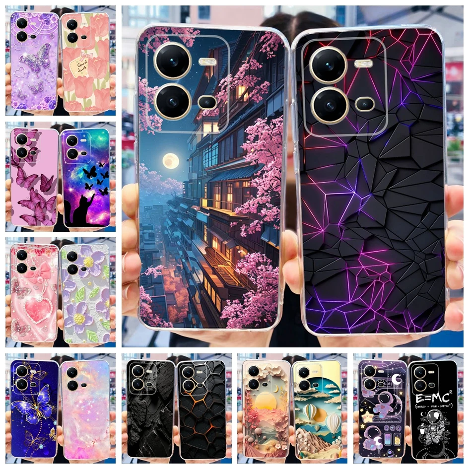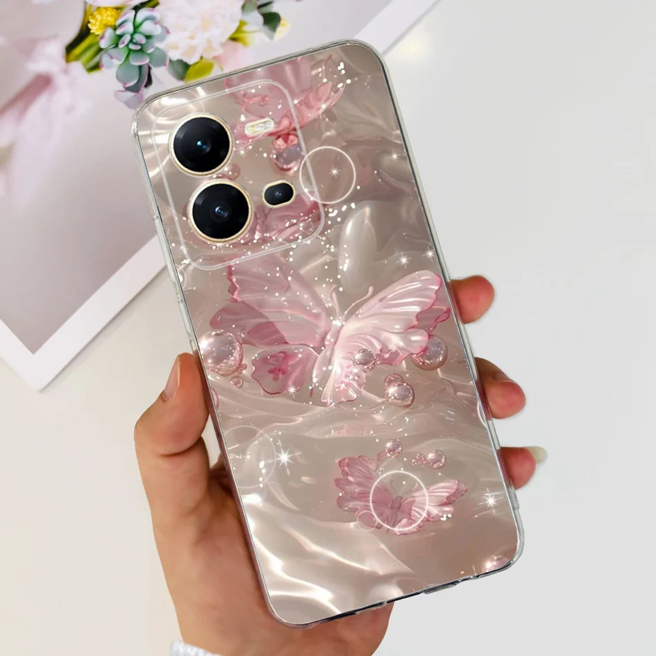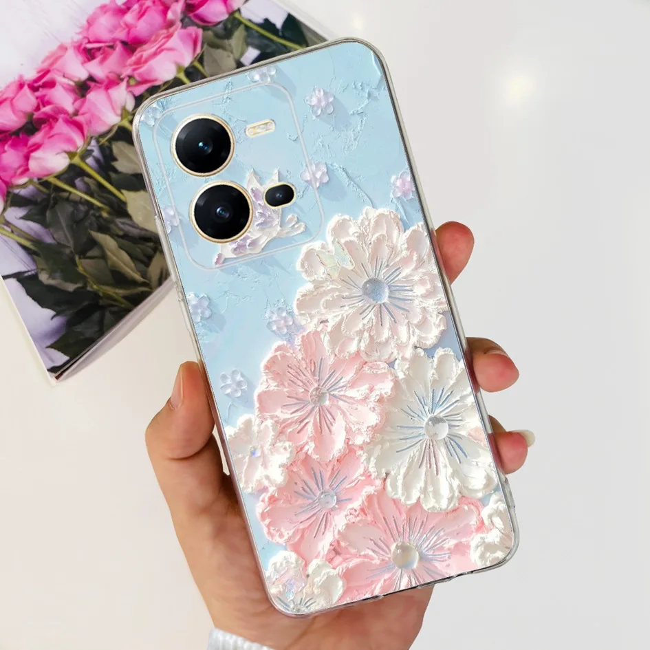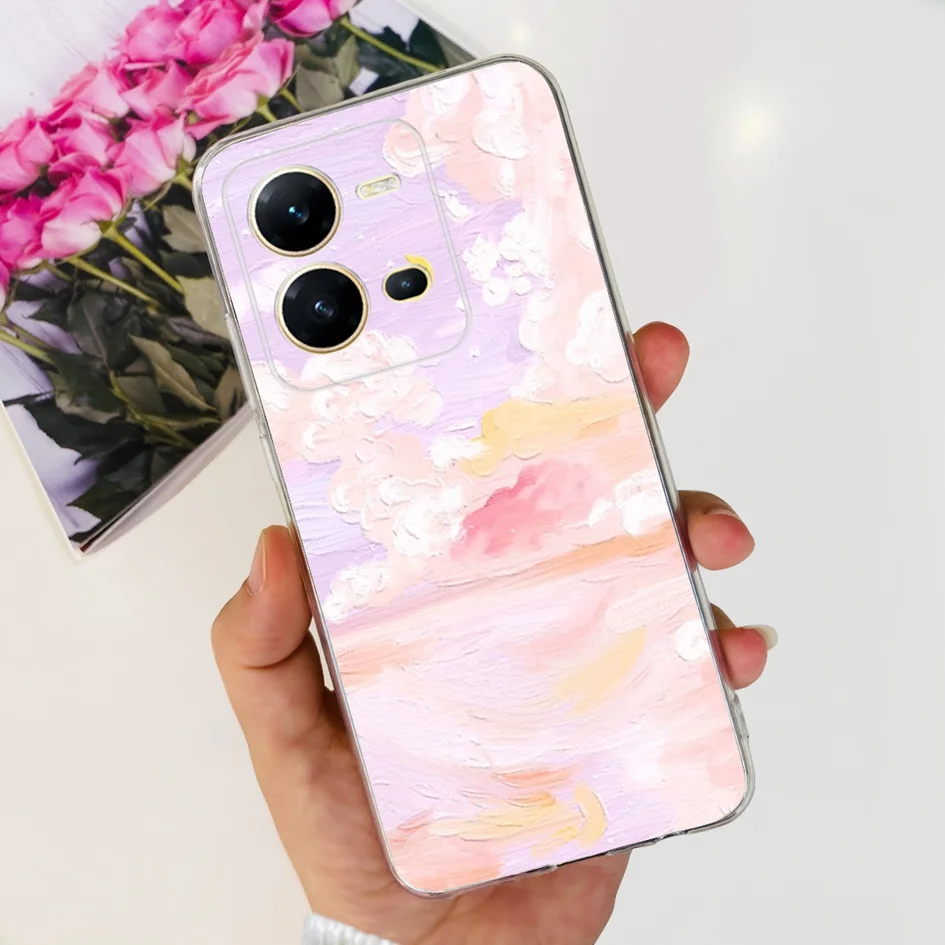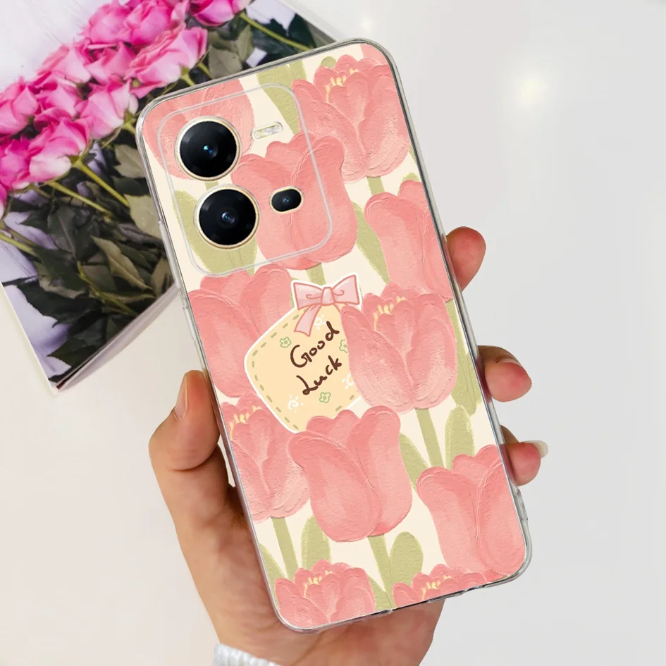 Para Vivo X80 Lite funda V2208 moda mármol flor transparente silicona suave TPU funda para Vivo V25 V25e V2202 V2201 V 25 parachoques