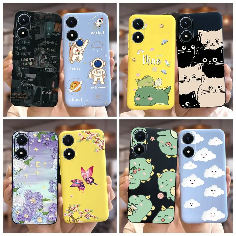 Para Vivo Y02s funda V2203 Linda funda de dibujos animados de dinosaurio fundas de teléfono de silicona suave para Vivo Y02s Y 02 s VivoY02s Fundas 6,51 ''parachoques