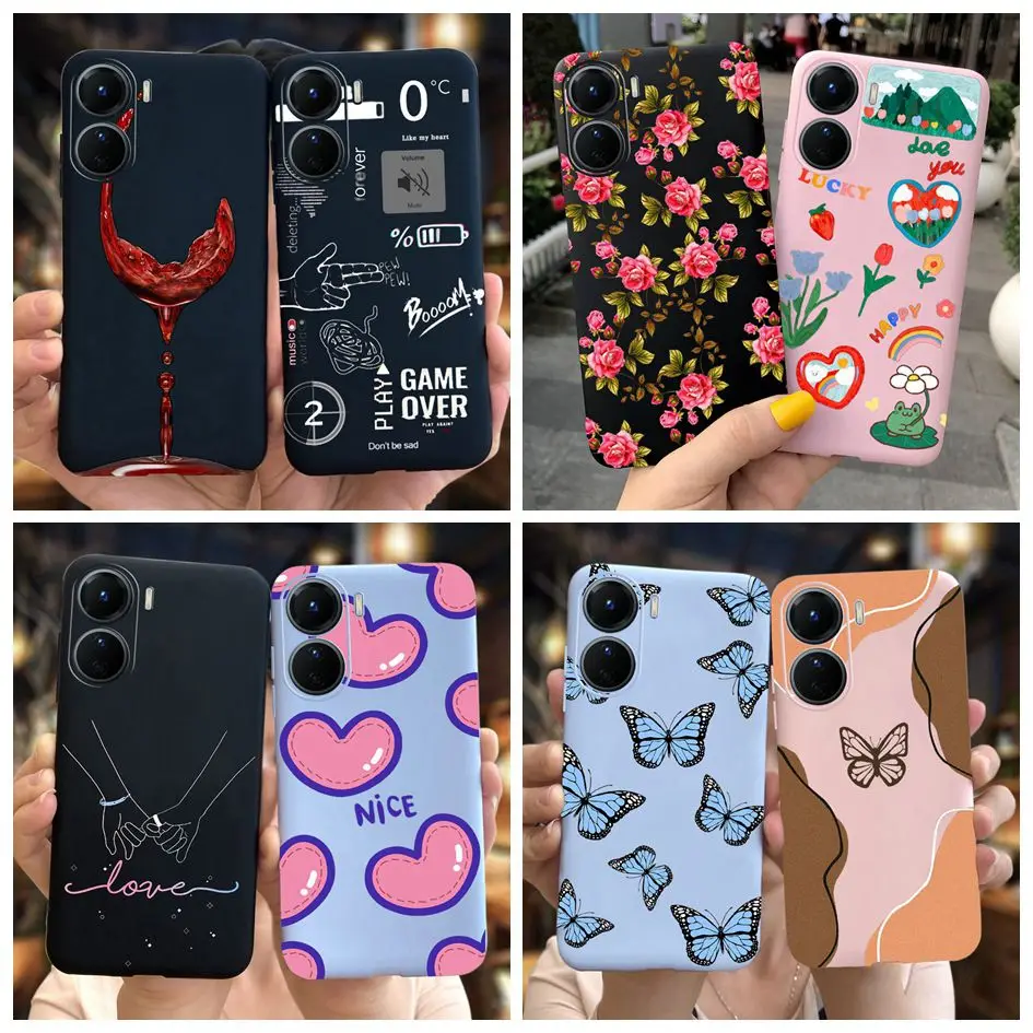 Funda de silicona para Vivo Y16 2022 funda bonita de amor corazón mariposa flor dibujos animados funda suave para Vivo Y16 4G V2214 vívoy16 Protector