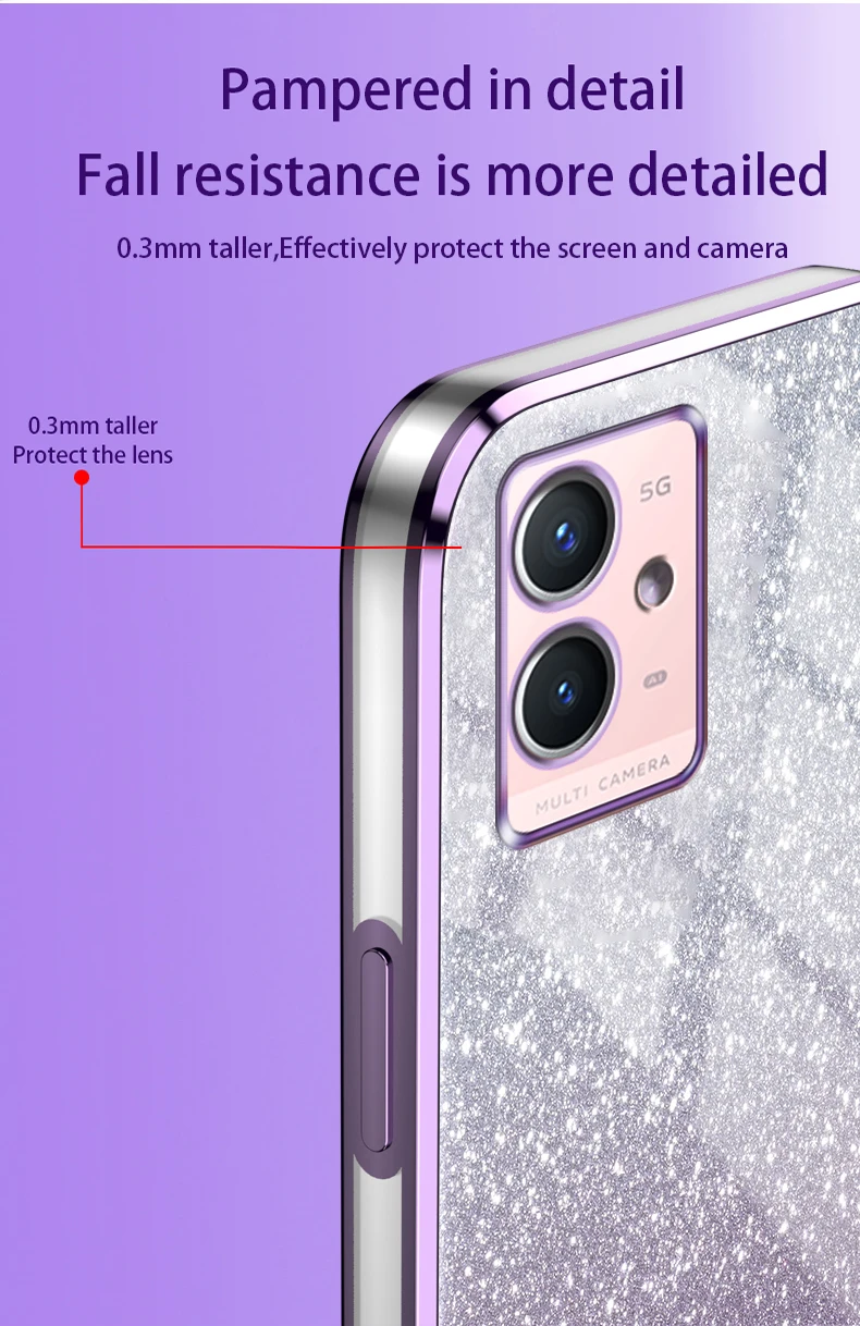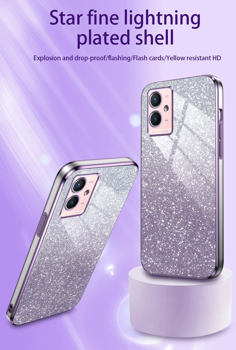 Comprar Funda de silicona para vivo Y75 5G, carcasa trasera de lujo con brillo degradado, V2142, V2127, V2154