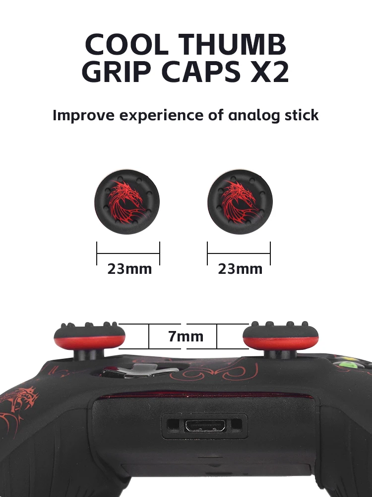 • Accesorios de agarre de pulgar:La funda de silicona Data Frog viene con accesorios de agarre para el pulgar que proporcionan un mejor agarre y control mientras se juegan juegos en su controlador Xbox One.