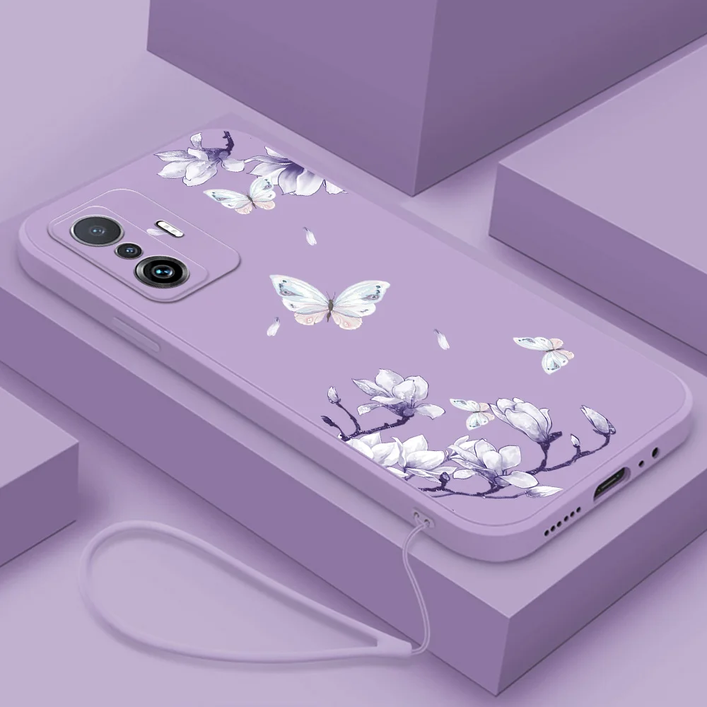 Funda de silicona con cordón de mariposa y flores para Xiaomi 12T Pro 12 Lite Mi 12 11 Lite 11T Pro 12x12S Ultra 5G
