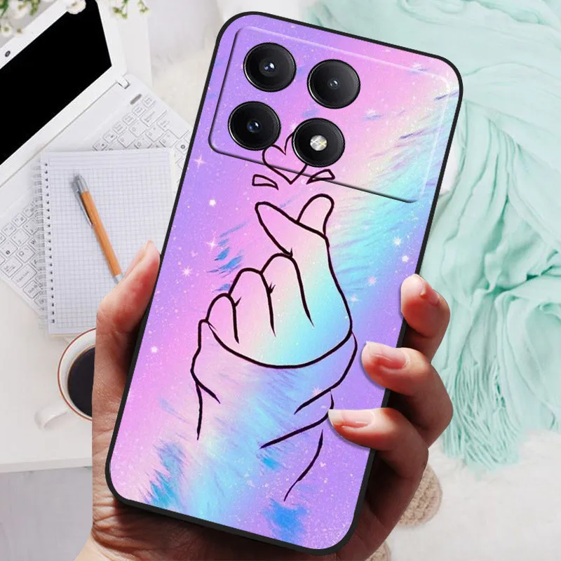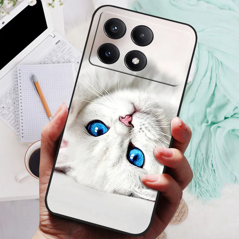 Funda de silicona para Xiaomi Poco F6 Pro, carcasa suave de TPU, color negro, Lobo y León, 2024