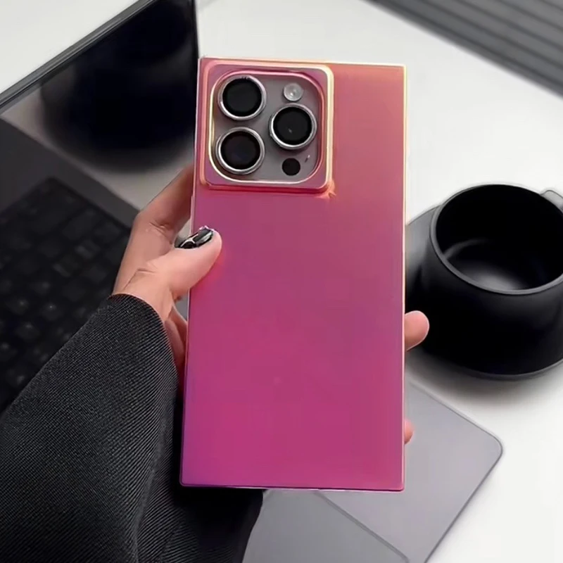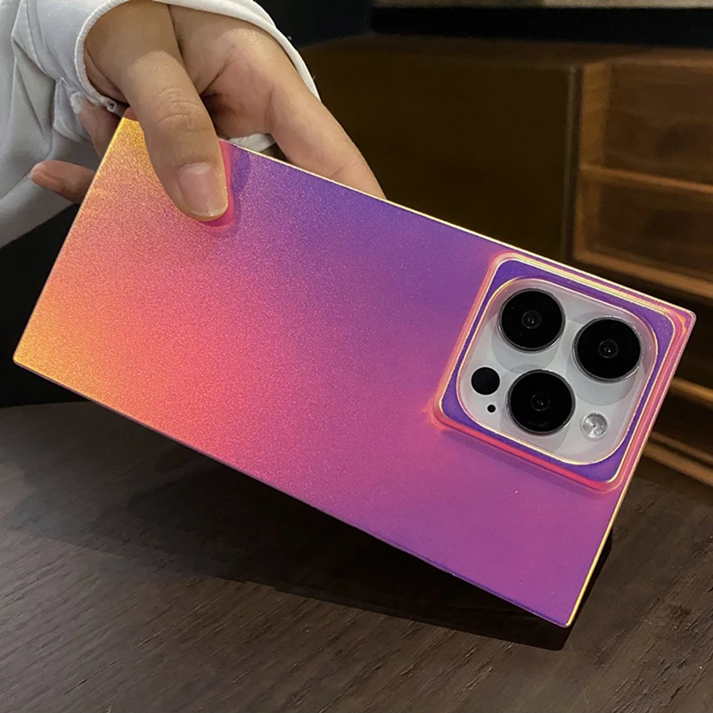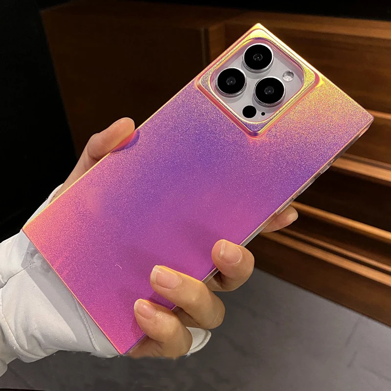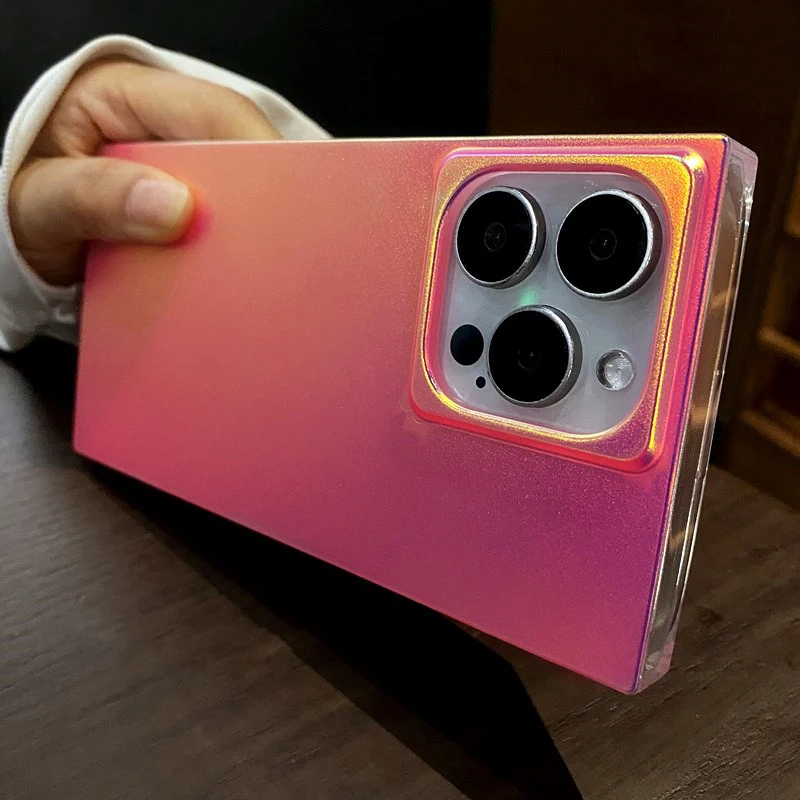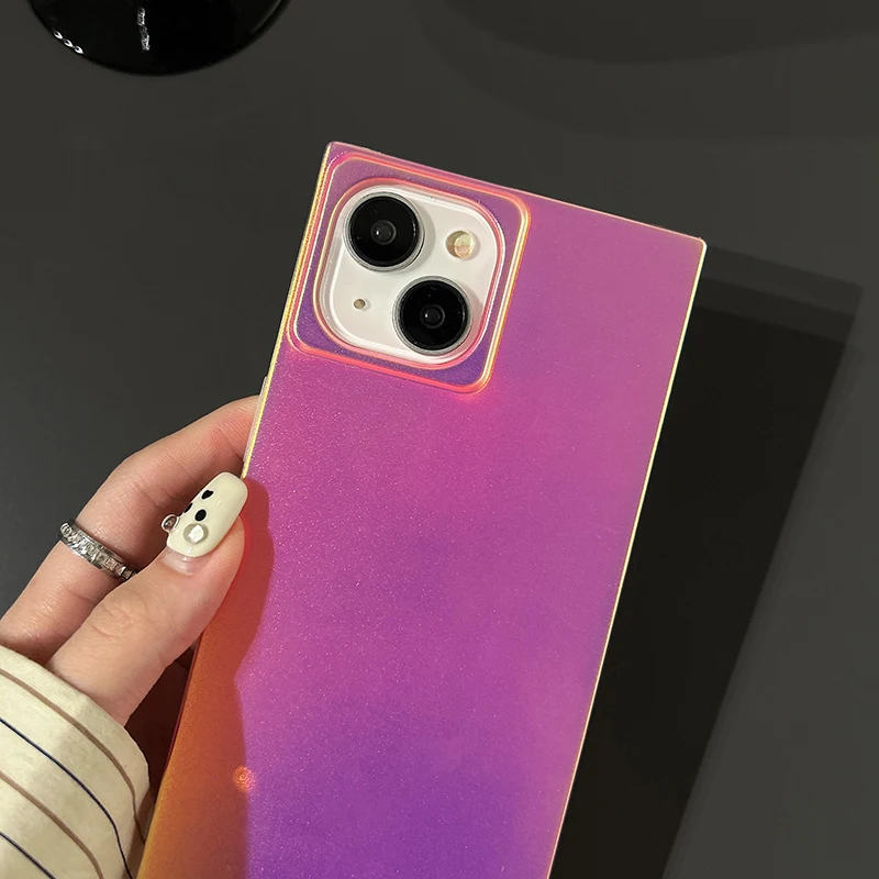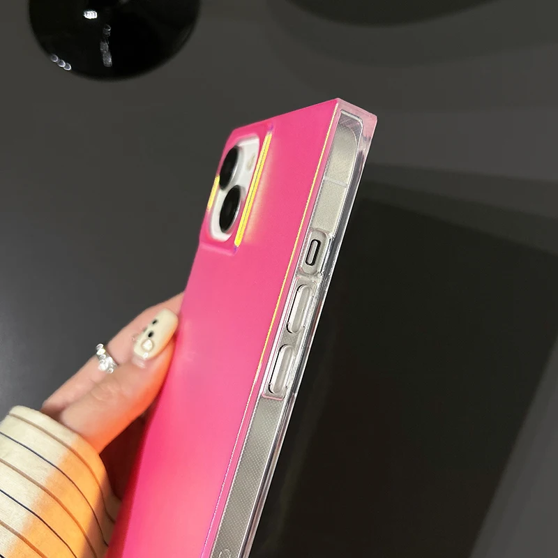 Comprar Funda Simple y elegante con borde láser rosa y verde para iPhone 13 14 15 16 17 Pro Max