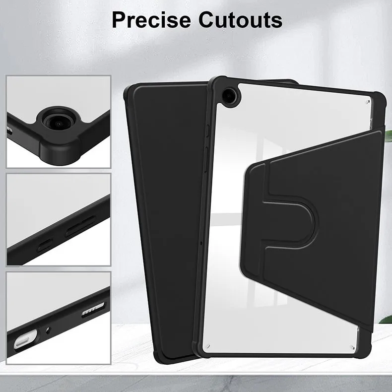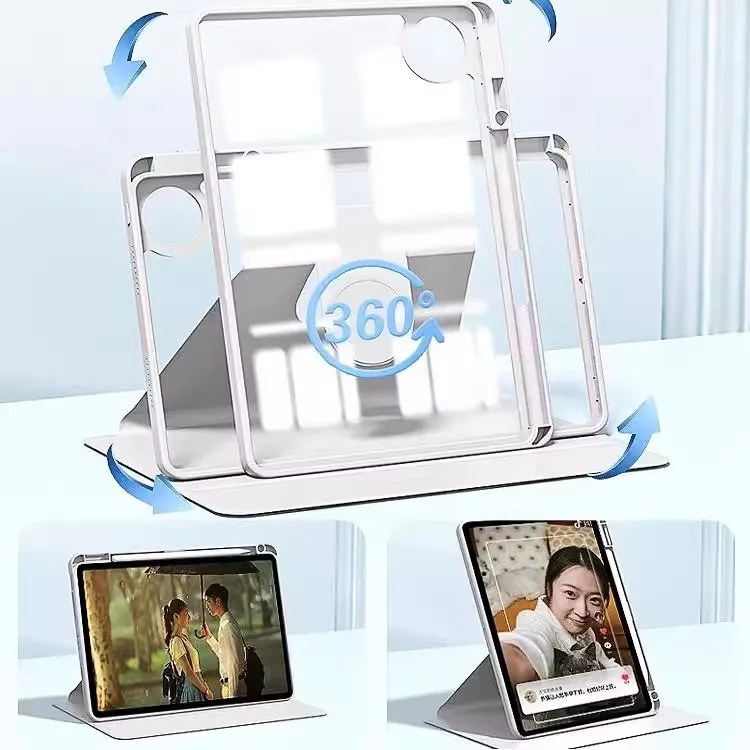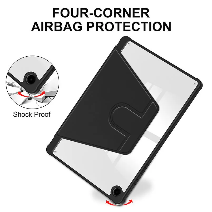 【Cubierta protectora giratoria de 720 grados】Una funda protectora que consta de una cubierta protectora de PU y una carcasa acrílica transparente.El estuche de acrílico transparente tiene una función de giro que convierte el estuche en un soporte de visualización y un soporte para teclado (Tenga en cuenta: ¡lápices no incluidos!).