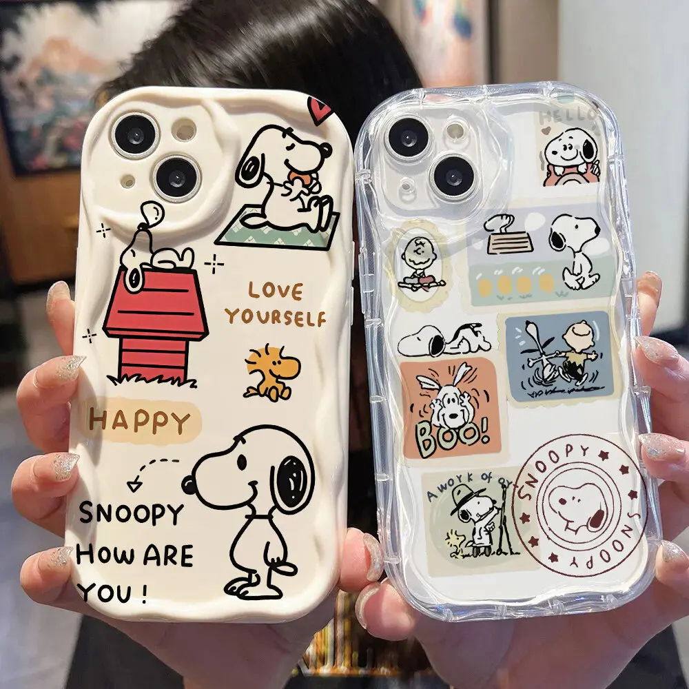 Comprar Funda Snoopy de dibujos animados para Xiaomi Redmi Note 14 Pro 5G 12 14 4G 11 10 12 13 14 Pro Plus 12S 14C 13C 12C 13 12 A3 cubierta ondulada color crema