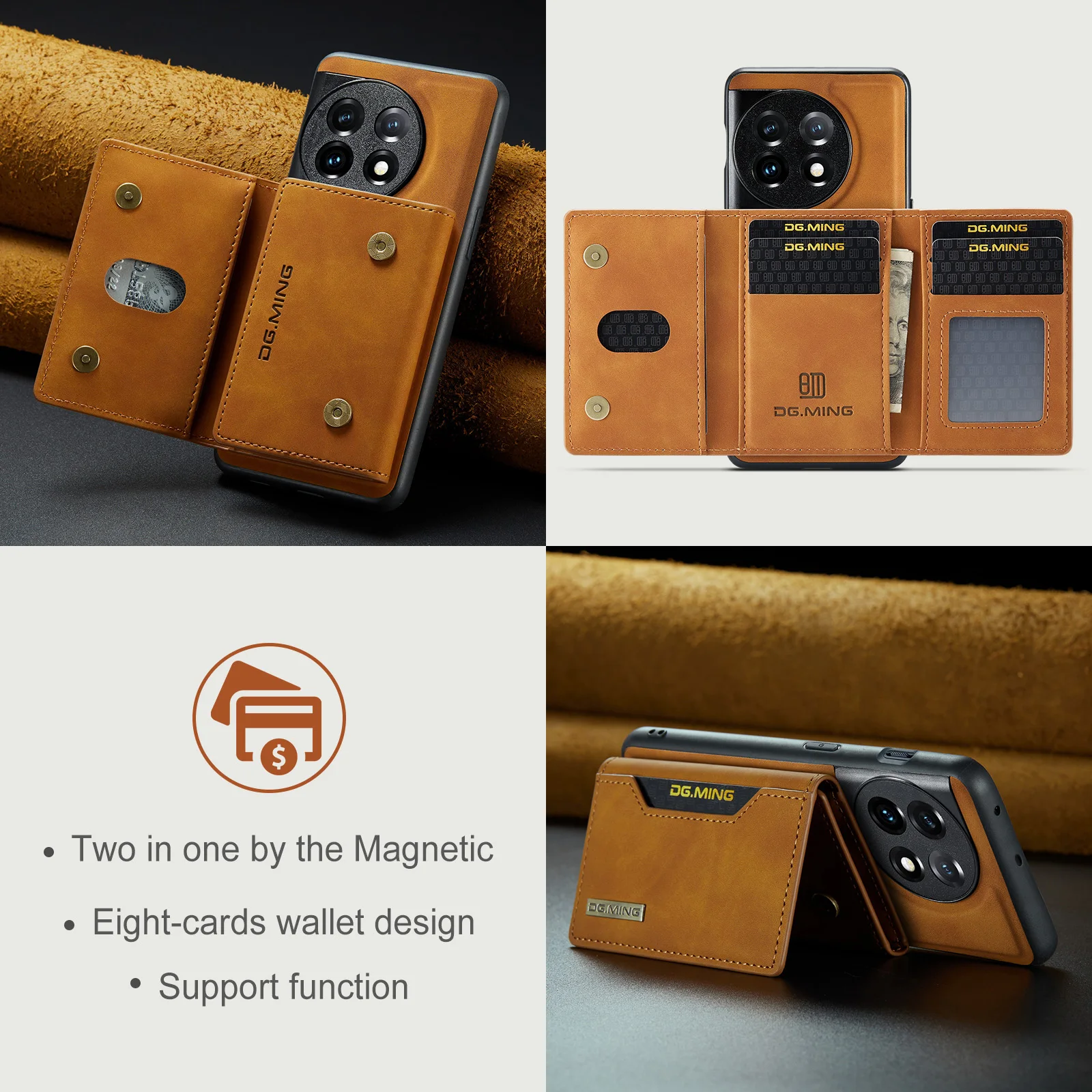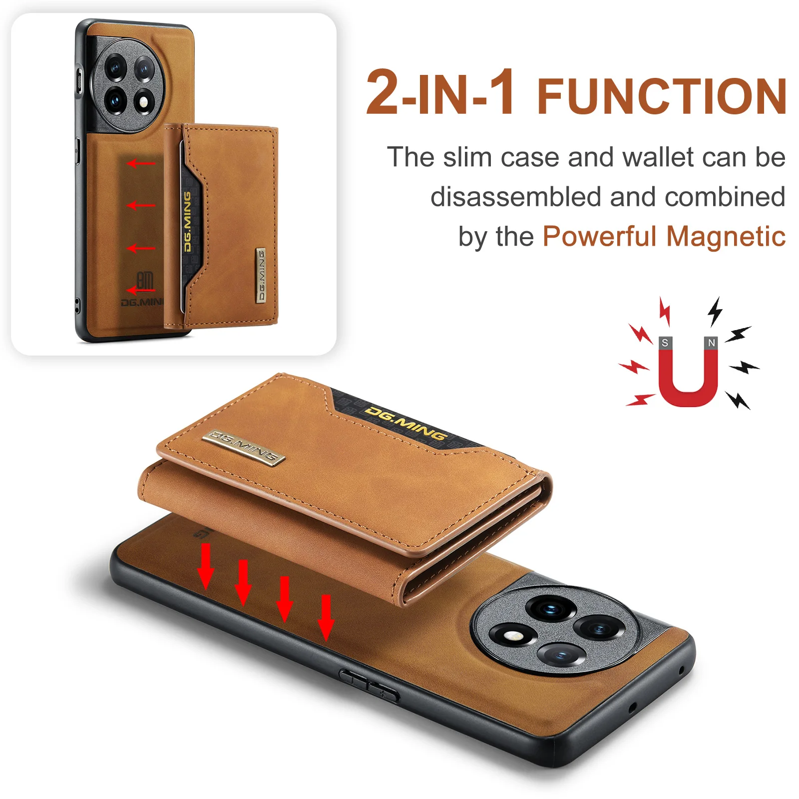 Comprar Funda Solt 2 en 1 de cuero con tarjetas desmontables para Oneplus 13 12 11 One Plus 10 Pro 10R 9 9R, funda magnética con tapa extraíble