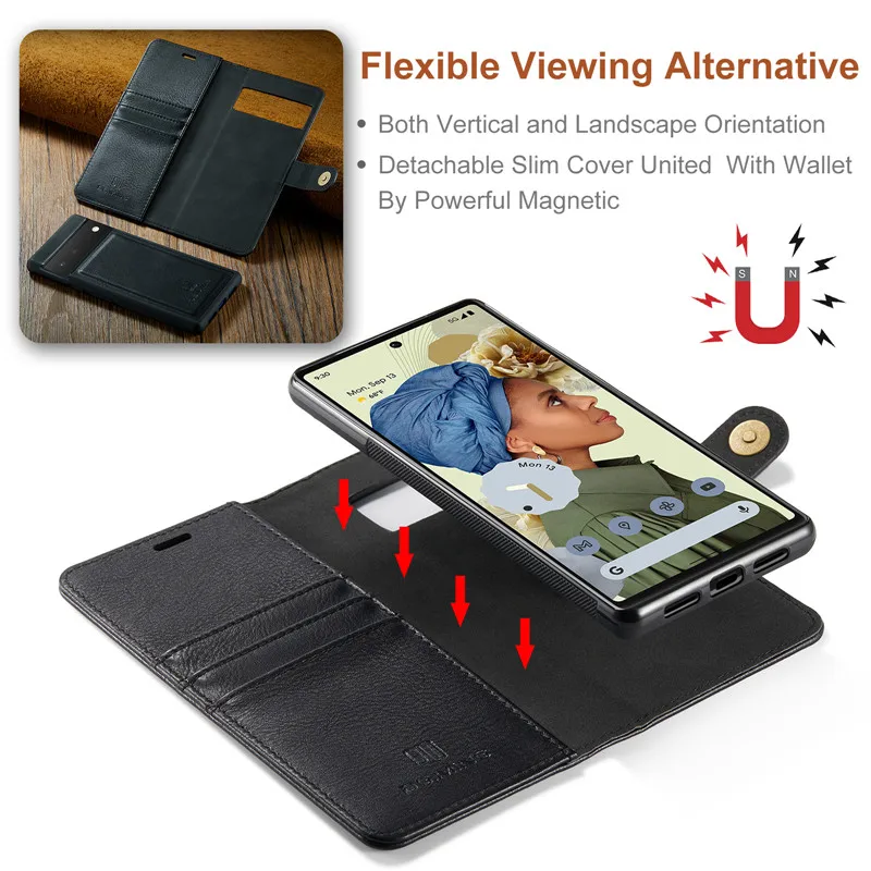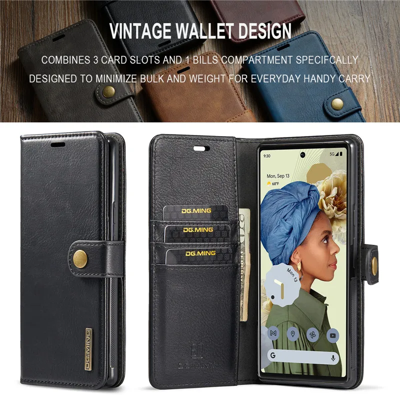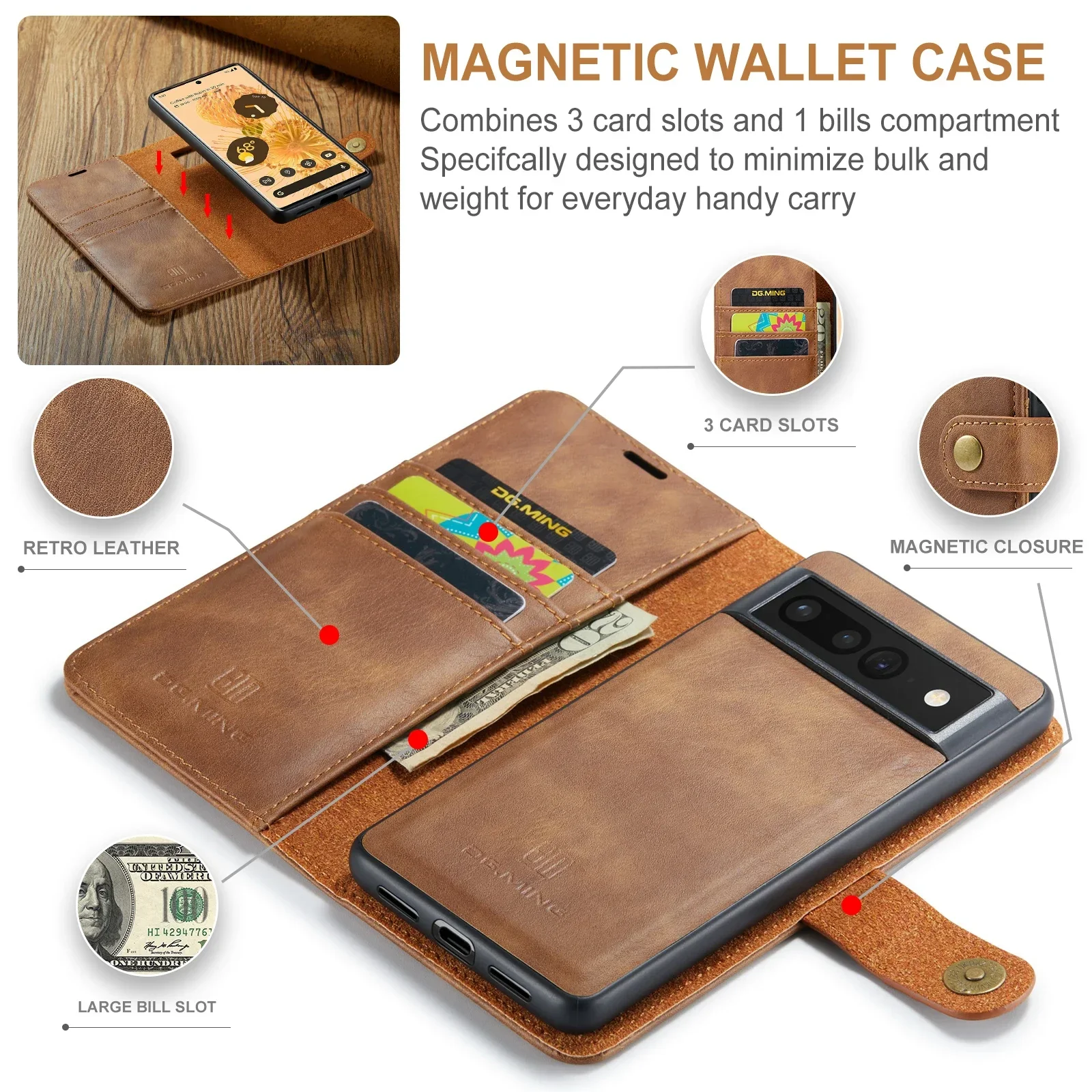 Comprar Funda Solt de cuero magnética desmontable Retro para Google Pixel 9 Pro XL 8 7 7Pro 7A, funda de libro con soporte, bolsillo para tarjetas